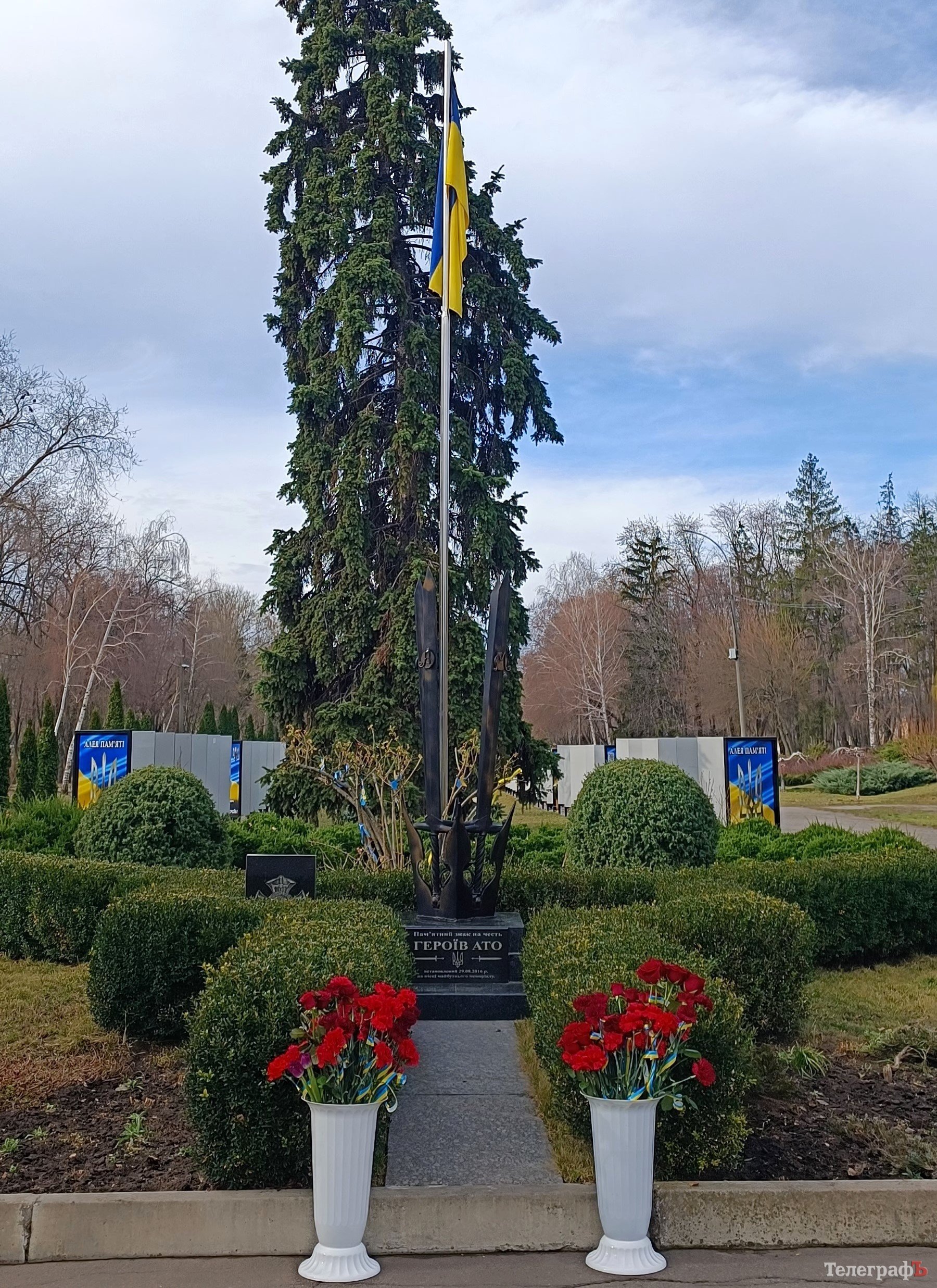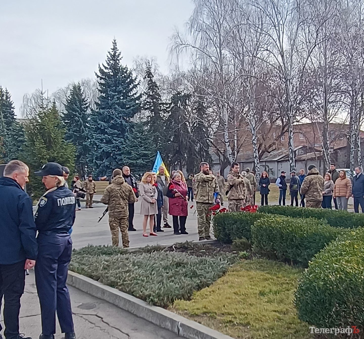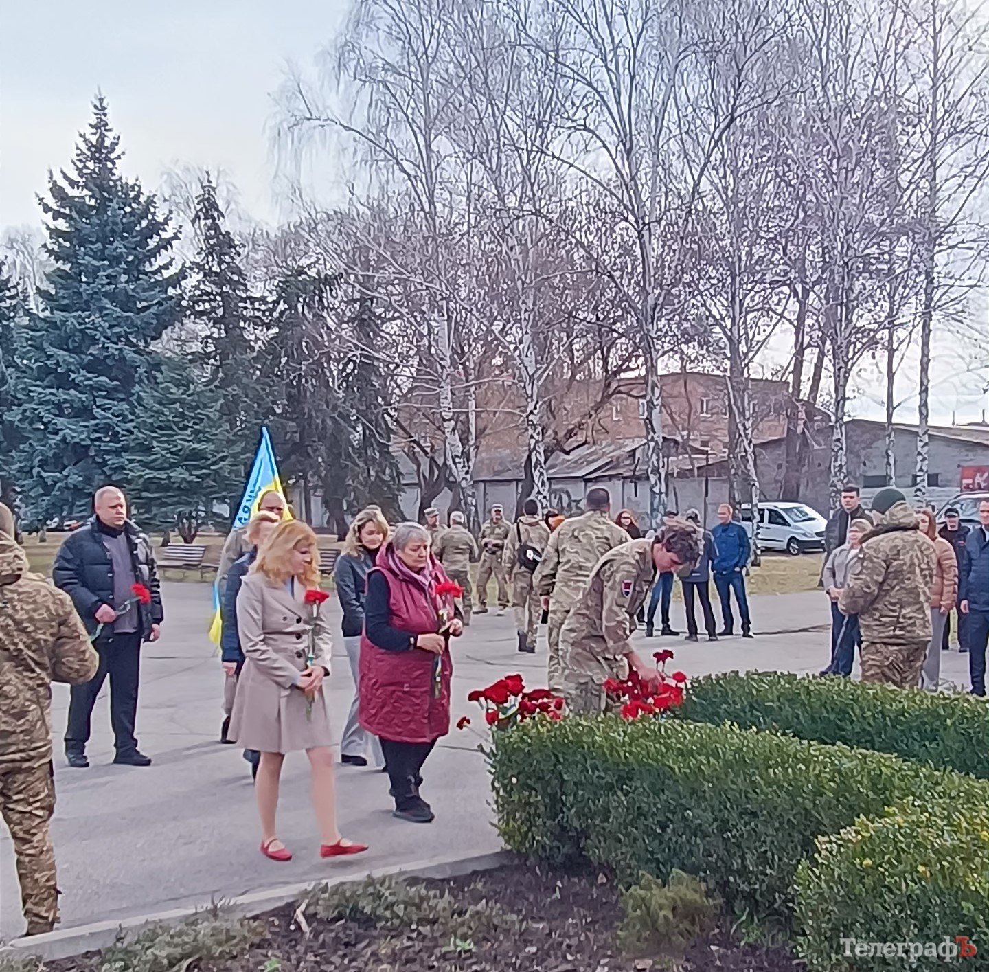 Кременчуцька влада, військовослужбовці та ветерани, рідні полеглих захисників та небайдужі містяни принесли квіти до пам’ятного знаку загиблим учасникам у зоні АТО у парку «Слави».