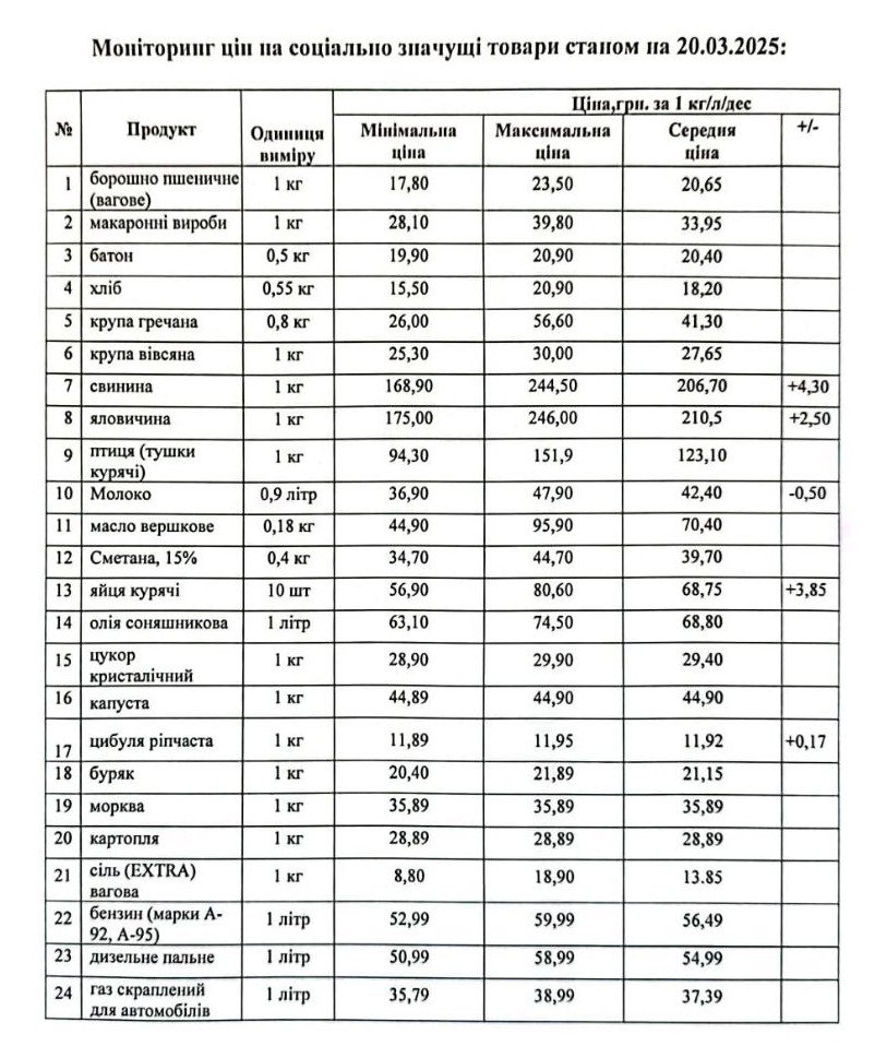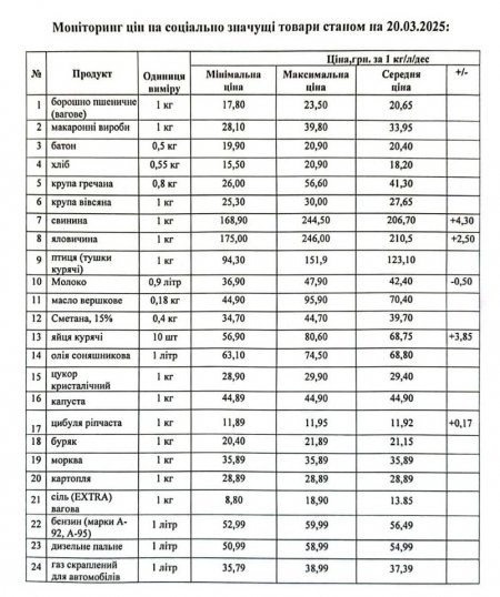 Кременчуцьке районне управління Держпродспоживслужби провело моніторинг цін на соціально значущі товари у торгівельних закладах району станом на 20 березня. З цією інформацією наше видання ознайомила Кременчуцька районна військова адміністрація.