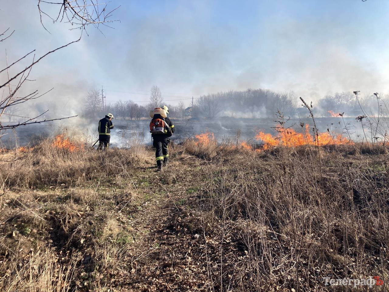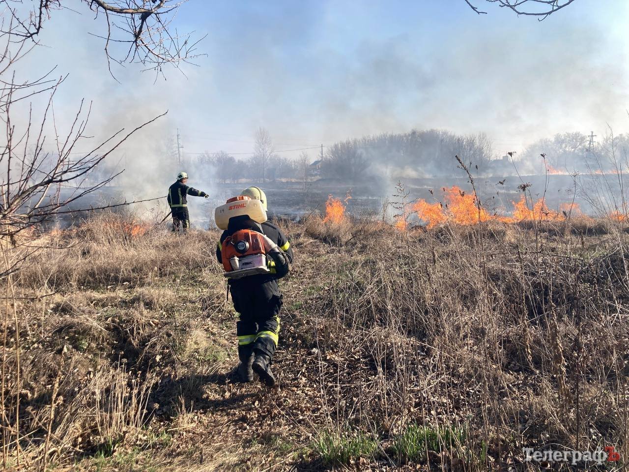 У Кременчуці в районі тупика Айвазовського саме в цей момент на пустирі палає суха трава. Пожежники борються з вогнем, щоб не пустити його розповсюдження у бік домівок й лісосмуги.