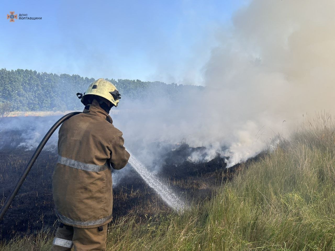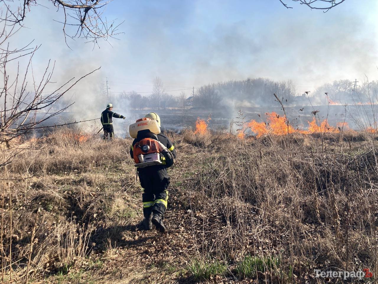 У Кременчуці палає суха трава — пожежники борються з вогнем. Фоторепортаж