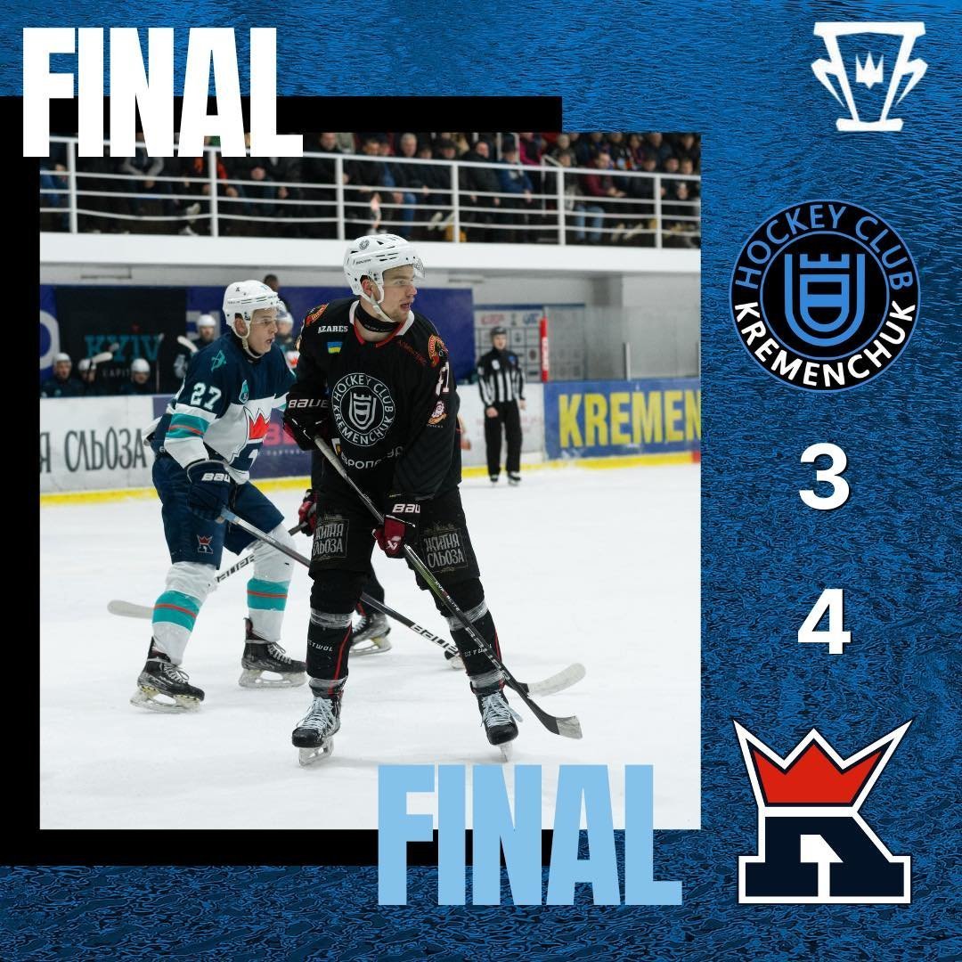 Хокейний клуб «Кременчук» поступився «Київ Кепіталз» у третій грі фіналу чемпіонату України з рахунком 3:4. Про це інформують у пресслужбі клубу.