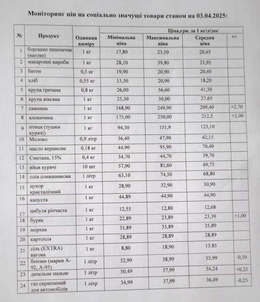 Кременчуцьке районне управління Держпродспоживслужби провело моніторинг цін на соціально значущі товари у торгівельних закладах району станом на 3 квітня. З цією інформацією наше видання ознайомила Кременчуцька районна військова адміністрація.