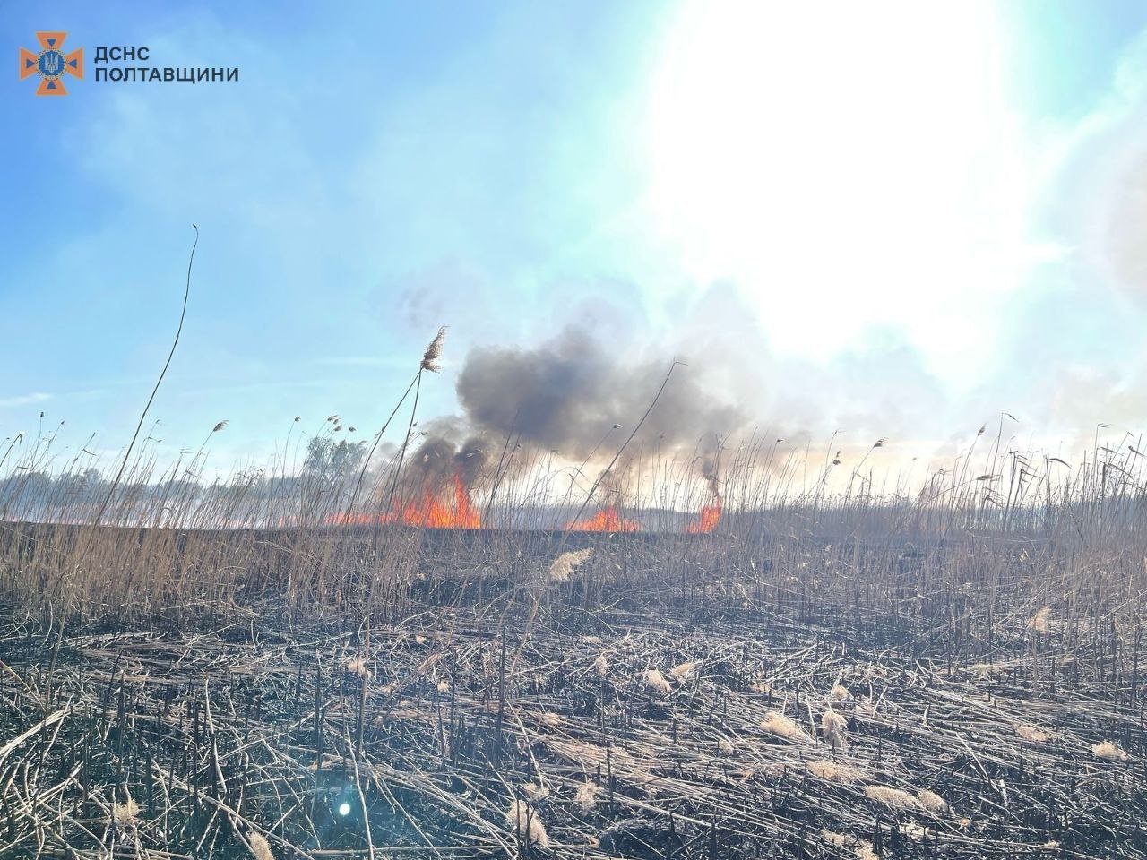 0 16.33 сталася пожежа по вулиці Чумацький Шлях у Кременчуці — внаслідок сильних поривів повітря вогонь стрімко поширювався та знищив близько 2,5 гектарів очерету та сухої рослинності.
