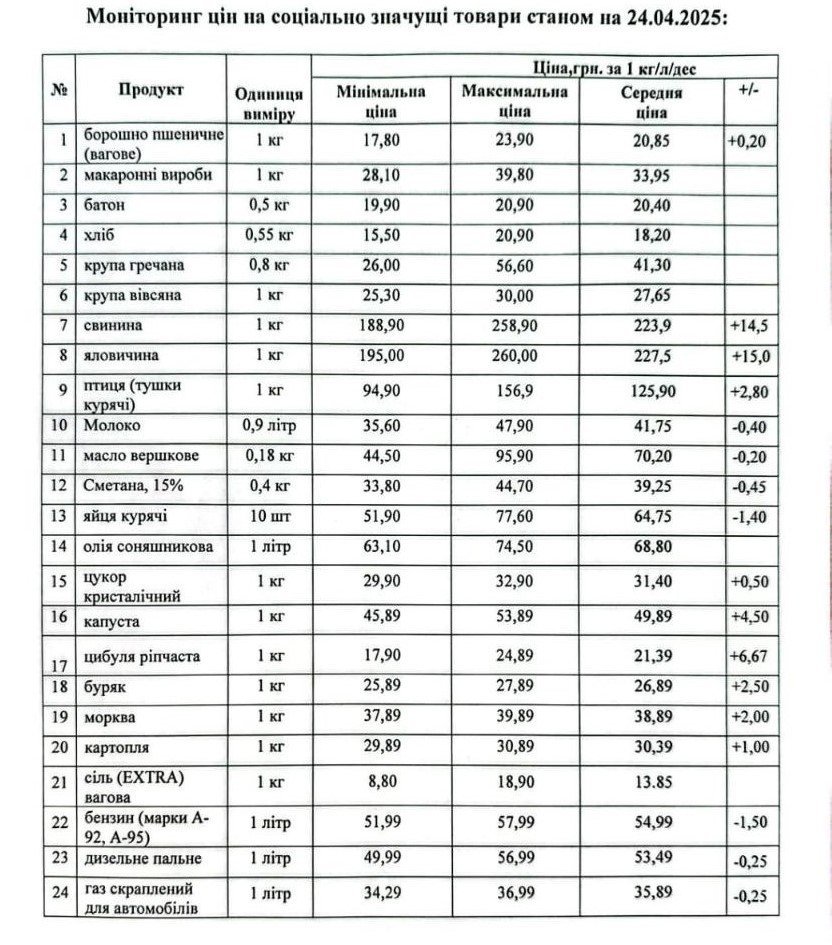 Кременчуцьке районне управління Держпродспоживслужби провело моніторинг цін на соціально значущі товари у торгівельних закладах району станом на 24 квітня. З цією інформацією наше видання ознайомила Кременчуцька районна військова адміністрація.