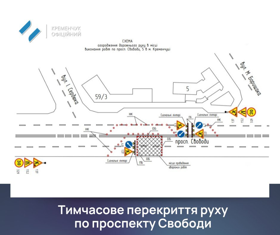 До 23 травня у Кременчуці частково обмежили рух автомобільного транспорту по проспекту Свободи. Про це стало відомо із проєкту рішення виконавчого комітету Кременчуцької міської ради.