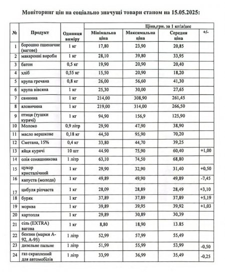 Кременчуцьке районне управління Держпродспоживслужби провело моніторинг цін на соціально значущі товари у торгівельних закладах району станом на 15 травня. З цією інформацією наше видання ознайомила Кременчуцька районна військова адміністрація.