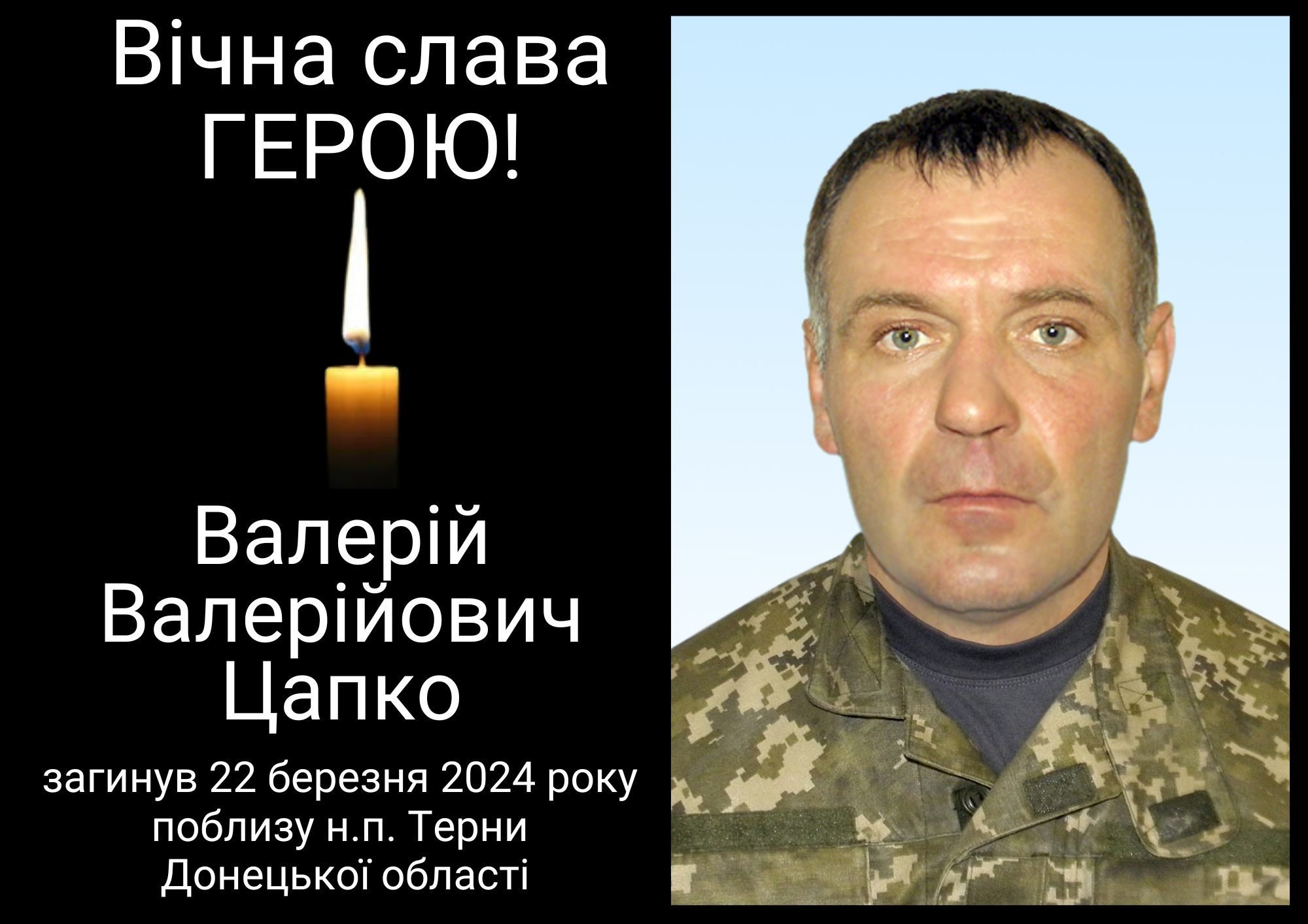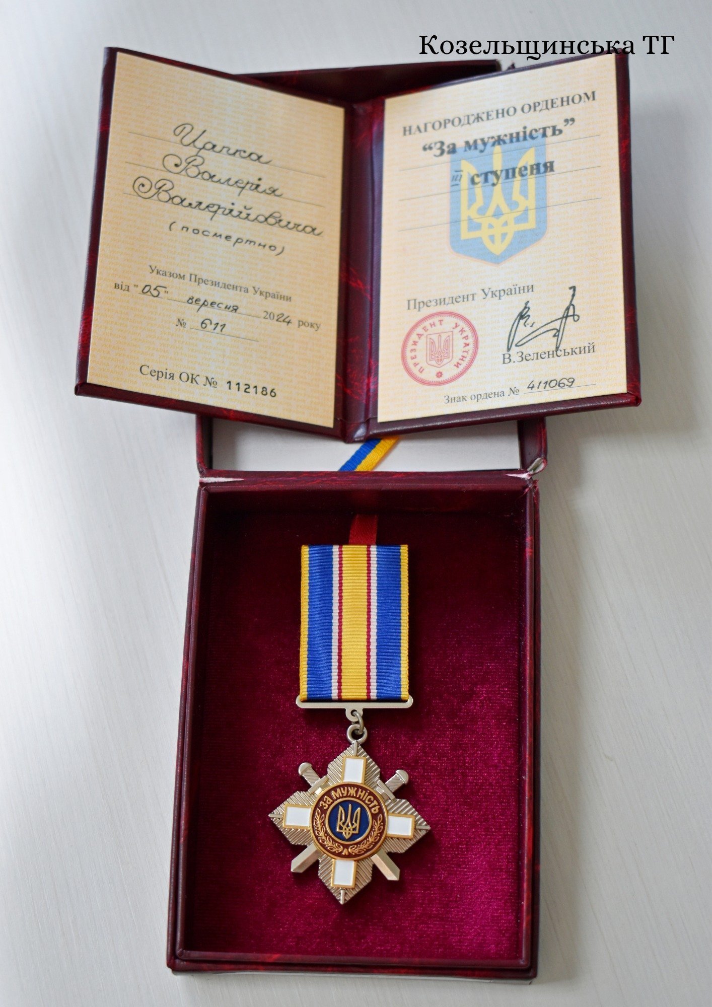 Ще один загиблий захисник із Кременчуччини отримав посмертну нагороду: орденом «За мужність» III ступеня відзначили Валерія Цапка з Козельщинської громади. Про це інформують у пресслужбі громади.