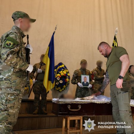 Прощання з поліцейським відбулося у Краматорську. Провести захисника в останню путь прийшли рідні, друзі та колеги.
