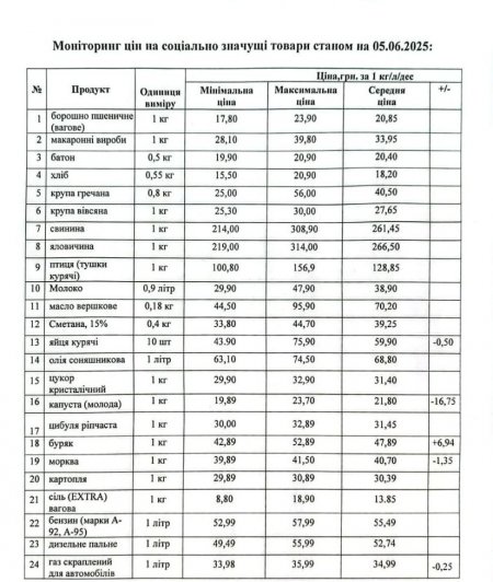 Кременчуцьке районне управління Держпродспоживслужби провело моніторинг цін на соціально значущі товари у торгівельних закладах району станом на 5 червня. З цією інформацією наше видання ознайомила Кременчуцька районна військова адміністрація.