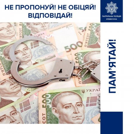 Нагадаємо, 13 травня в Лохвиці поліціянти зупинили автомобіль ВАЗ водій якого перебував у стані алкогольного сп’яніння. Він спробував уникнути відповідальності, запропонувавши патрульним хабар. Правоохоронці викликали слідчо-оперативну групу, яка зафіксувала факт спроби підкупу. За цим фактом відкрили кримінальне провадження за ч. 1 ст. 369 Кримінального кодексу України. Санкція статті — до 4-х років обмеження або позбавлення волі.