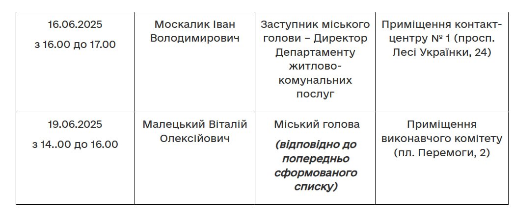 Прийом першого заступника міського голови Володимира Пелипенка, який мав відбутися 18 червня у приміщенні контакт-центру № 9 (просп. Свободи, 80), перенесено на 25 червня.