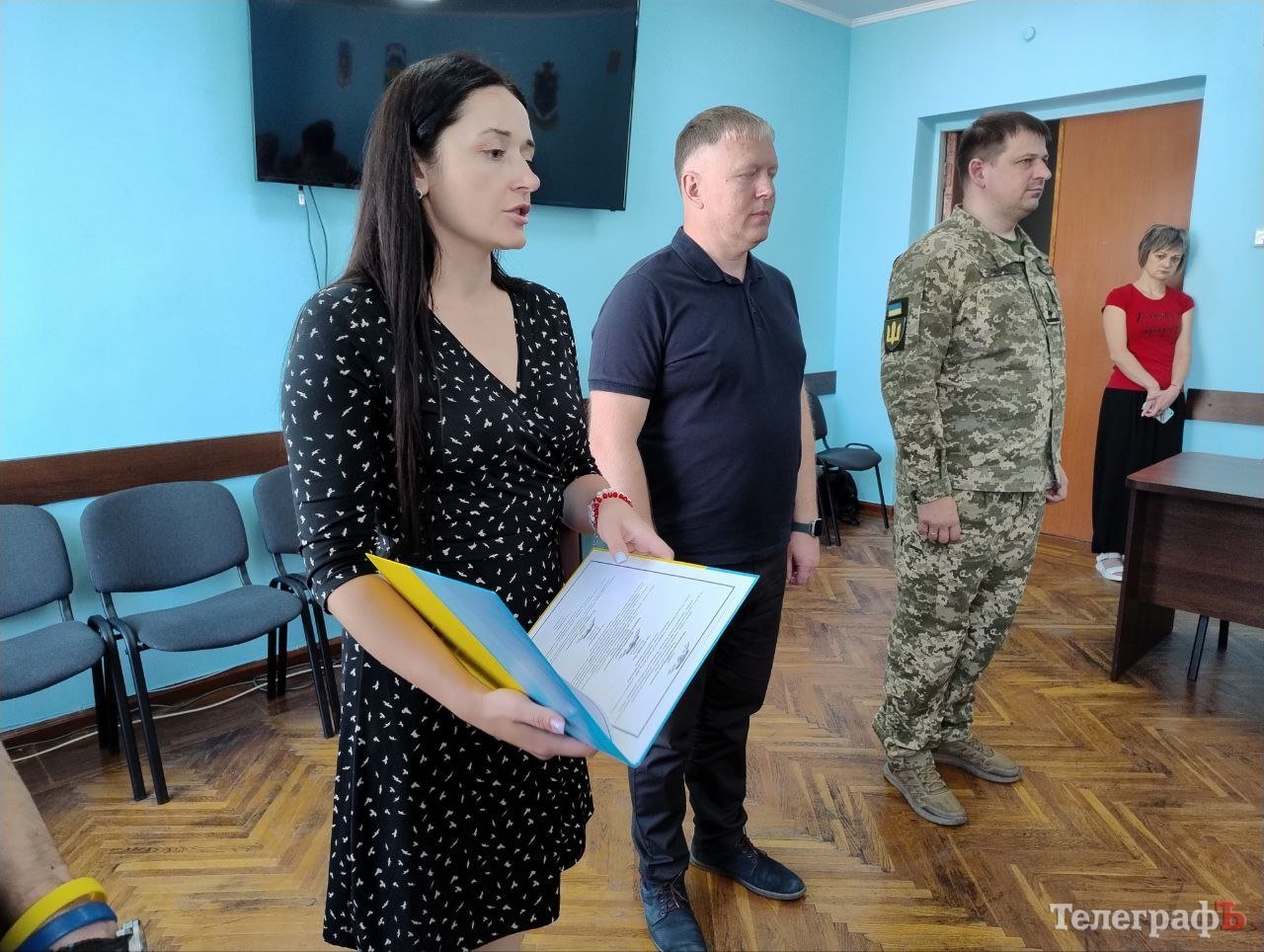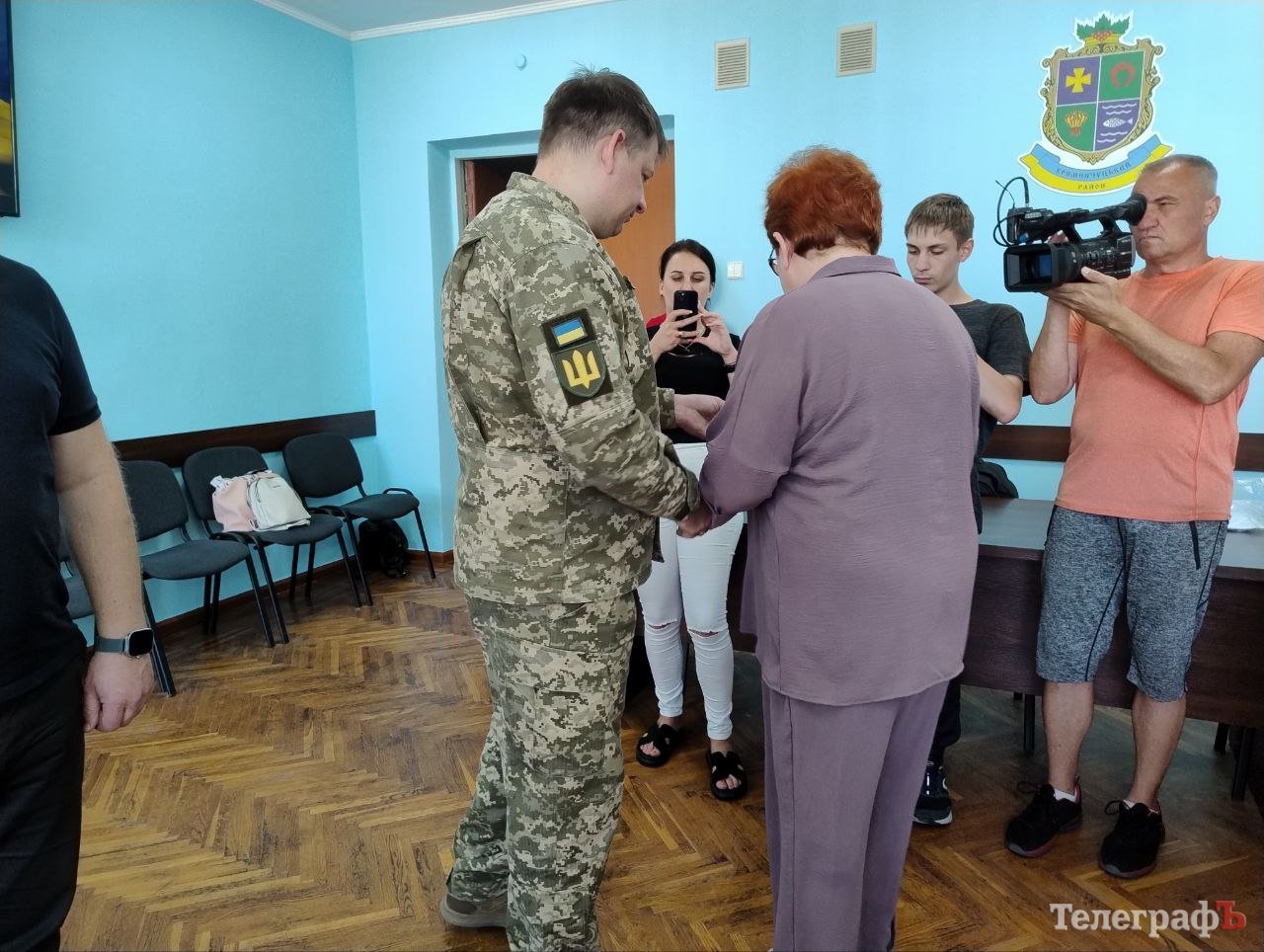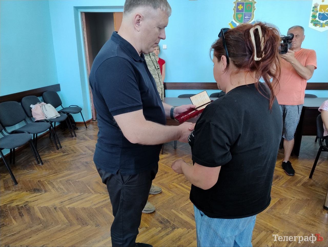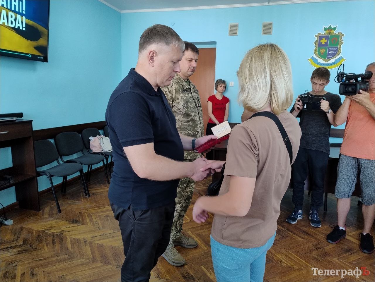 Вручили нагороди близьким загиблих бійців начальник Кременчуцької райвійськадміністрації Олександр Аленін та т. в. о. начальника Кременчуцького районного територіального центру комплектування та соціальної підтримки Тарас Саражин.