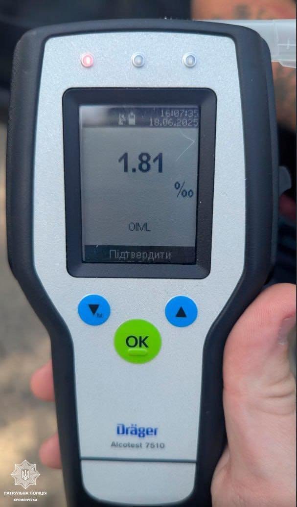 Щодо іншого п’яного водія надійшов виклик на лінію 102. Заявник повідомив, що керманич автівки, ймовірно, перебуває за кермом у нетверезому стані. Ця інформація підтвердилася — чоловік мав ознаки алкогольного сп’яніння, а результат огляду на приладі «Драгер» показав 1,81 проміле, що у понад 9 разів перевищує допустиму норму. До того ж цей водій також не мав права керування, оскільки не отримував посвідчення водія відповідної категорії.