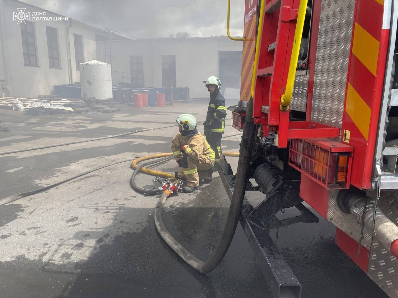 Вогнеборці ліквідували пожежу. Через сильне задимлення рятувальники працювали в апаратах захисту органів дихання. Вогнем знищено покрівлю на площі 800 кв. м., виробниче майно, а також пошкоджено стіни будівлі.