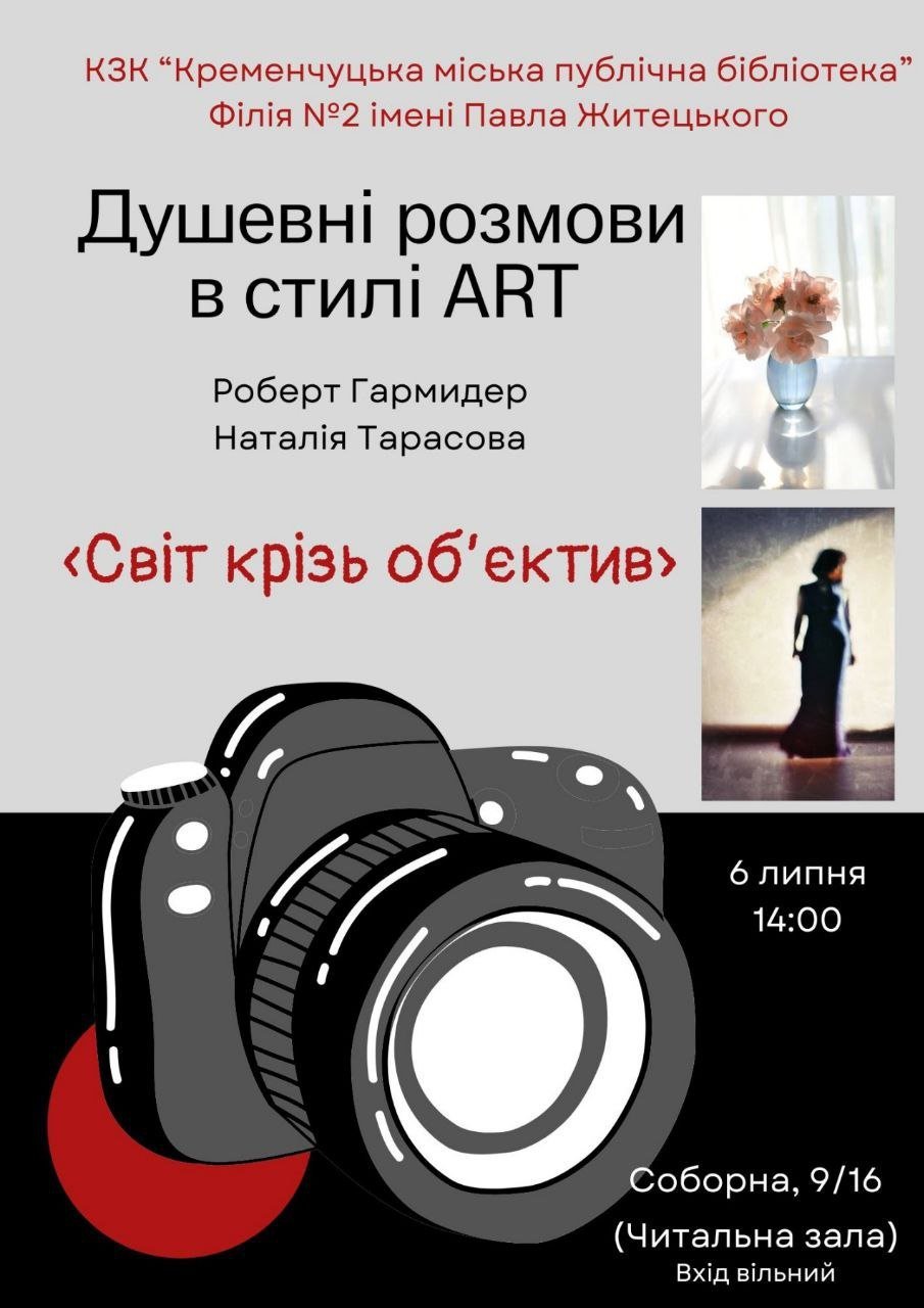 6 липня, філія №2 Кременчуцької публічної бібліотеки запрошує на подію з циклу «Душевні розмови в стилі ART». Цього разу захід має назву «Світ крізь об’єктив».