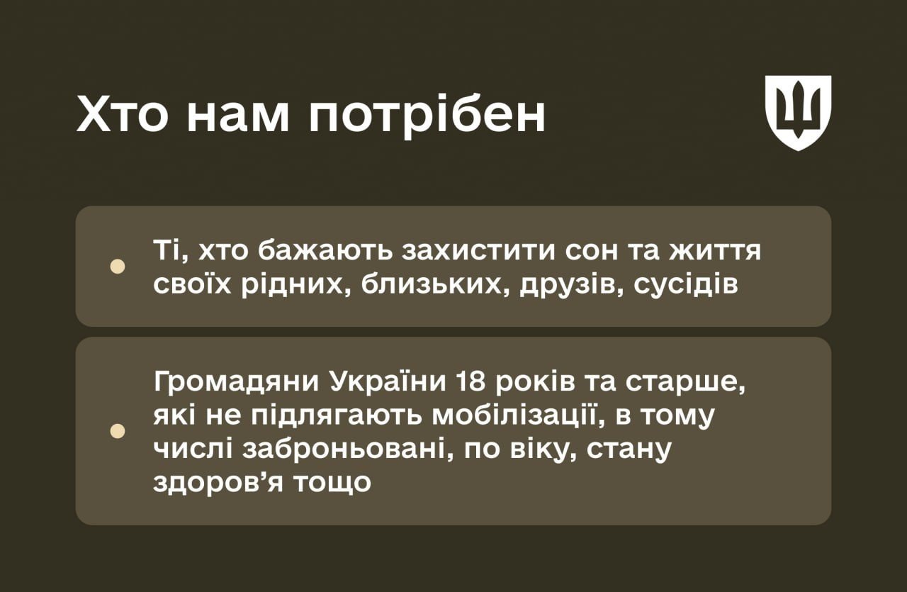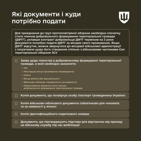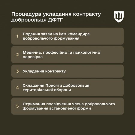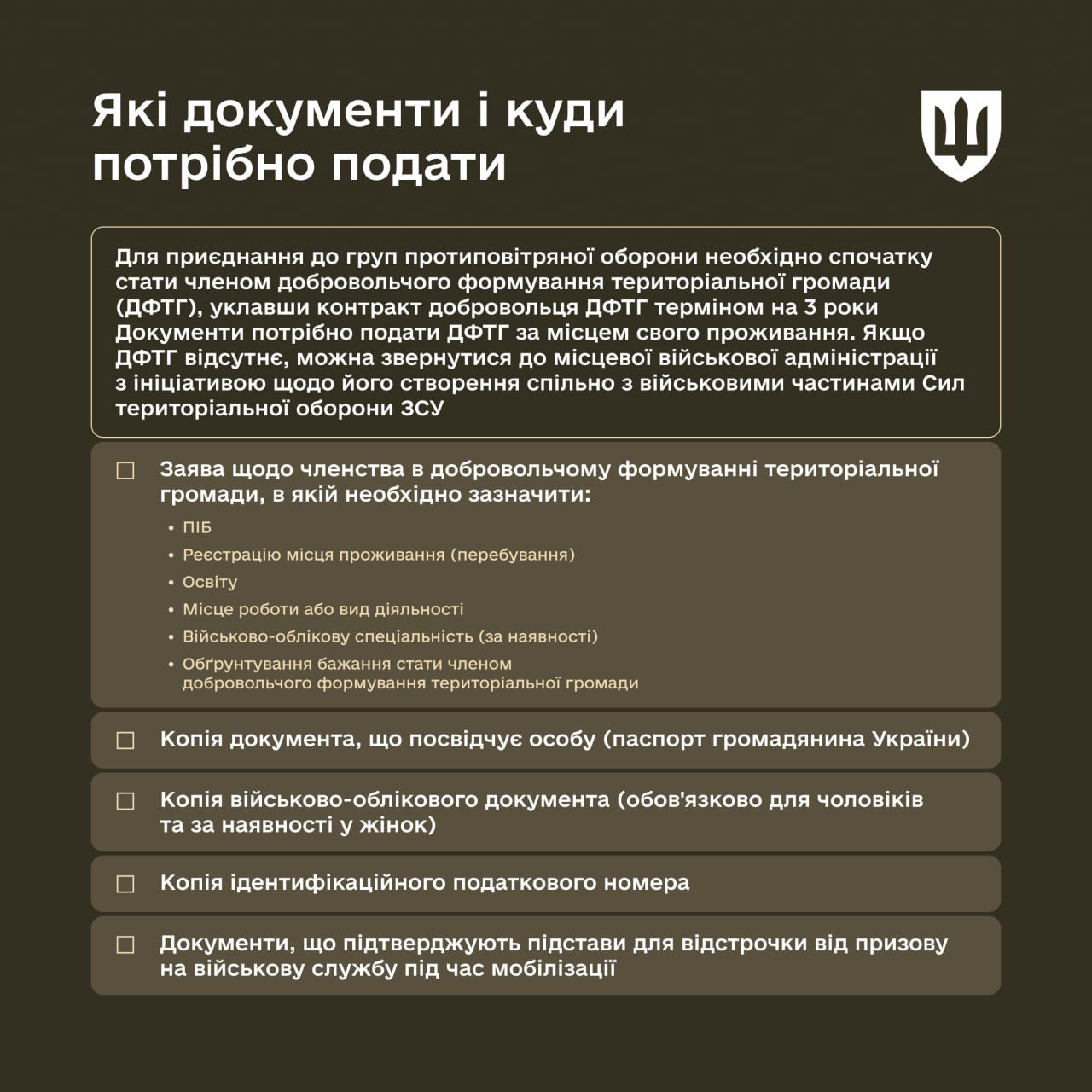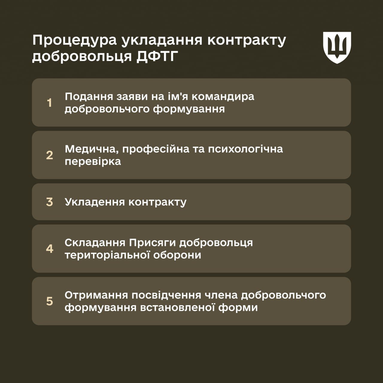 Добровольці мають звертатися до командира добровольчого формування територіальної громади (ДФТГ) за місцем свого проживання.