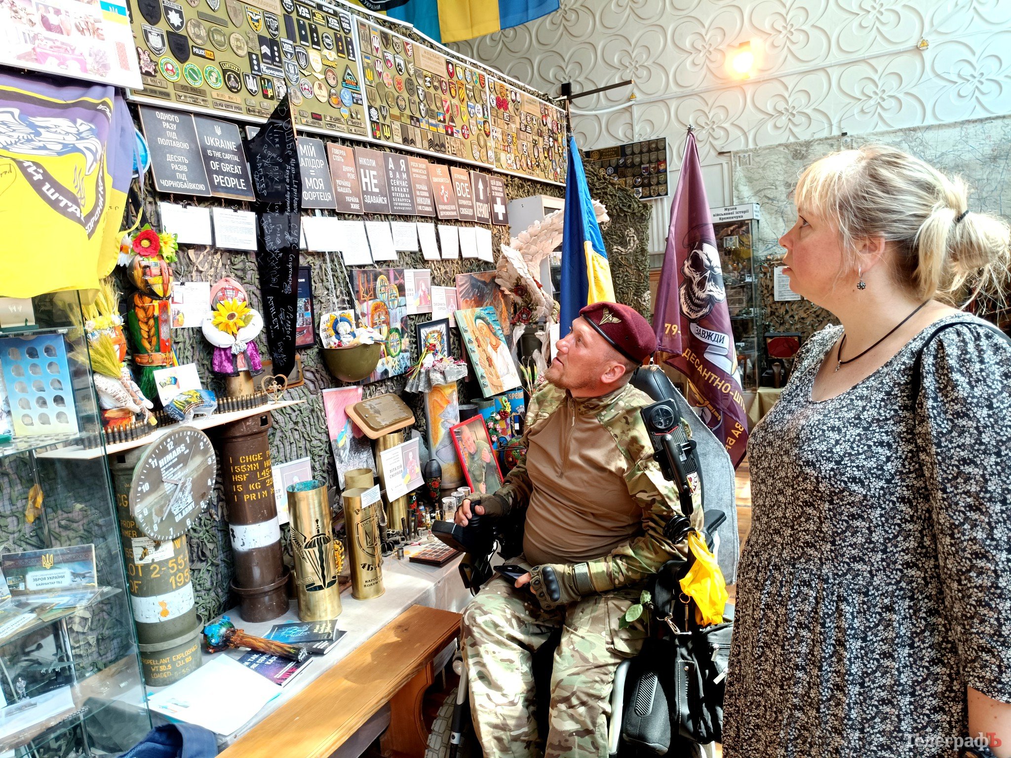 Днями ветеран відвідав військово-історичний музей ВПУ № 7, познайомився з експозицією й передав частину зібраних ним коштів на метал для скоб.