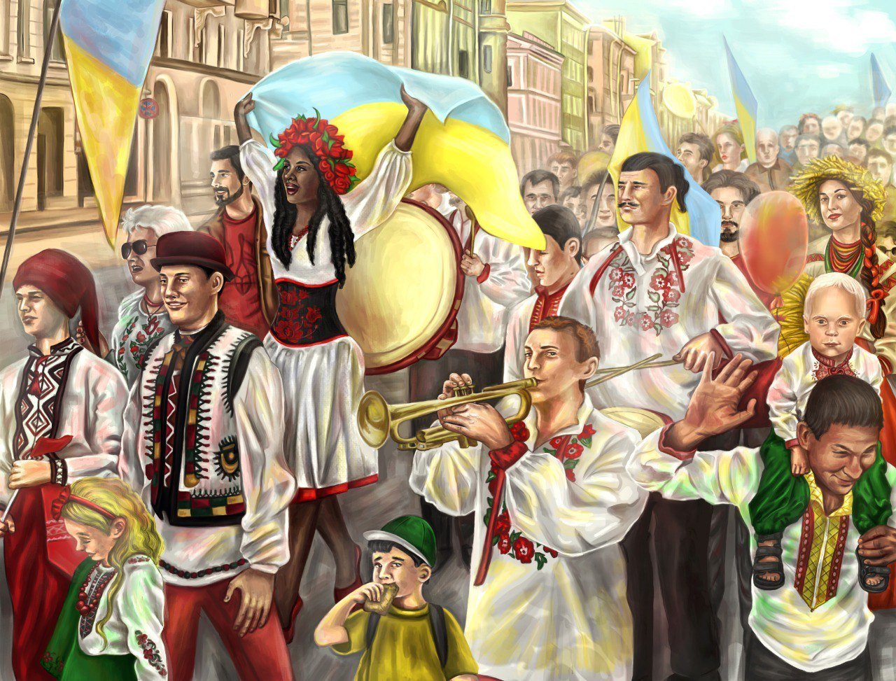 Одна з найзнаковіших робіт Софії — картина «Парад вишиванок», створена у 2020 році. На перший погляд, звичайний святковий хід, але варто придивитися і погляд зупиняється на одній з фігур: серед учасників — темношкіра жінка у вишиванці. Мисткиня художньо формулює важливу думку: українська ідентичність не про зовнішність чи походження, а про спільні цінності, повагу й рівність. У сучасній Україні немає «своїх» і «чужих» — є рівні, вільні, гідні люди. Через образи, створені на цифровому полотні, вона транслює меседж, який нині як ніколи актуальний.
