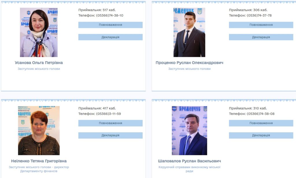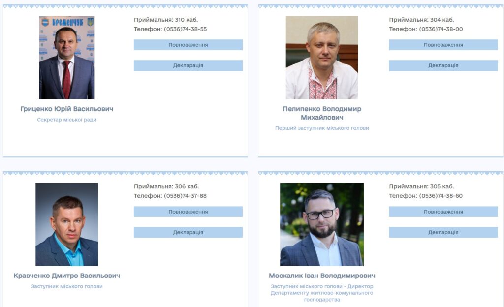 На сайті Кременчуцької міської ради опублікований перелік заступників міського голови.