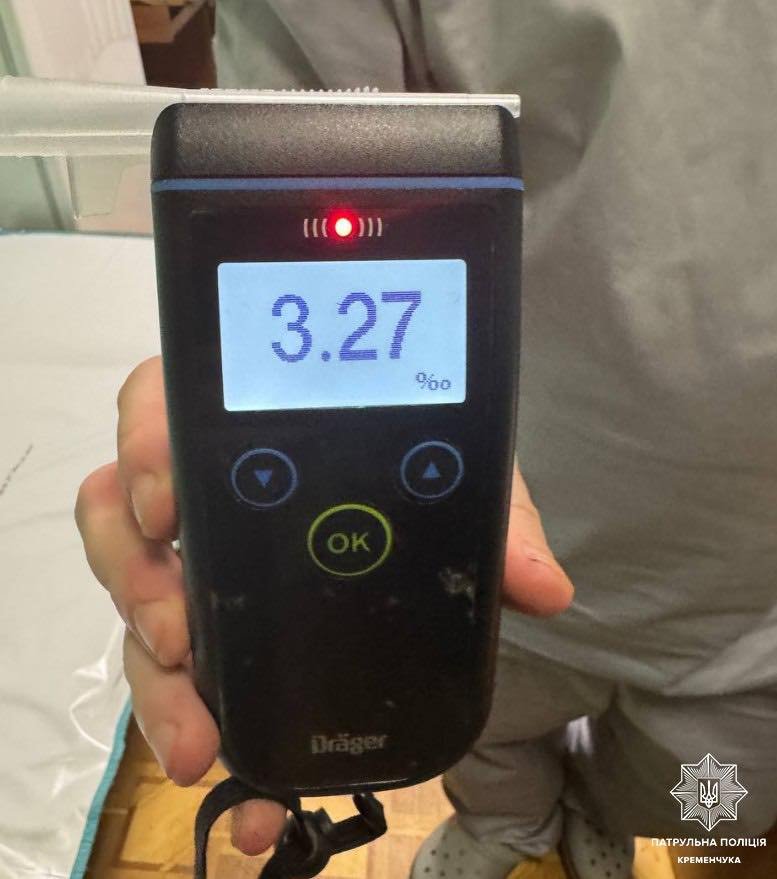 У медичному закладі лікар підтвердив стан сп’яніння — 3,27 проміле, що в понад 16 разів перевищує допустиму норму!