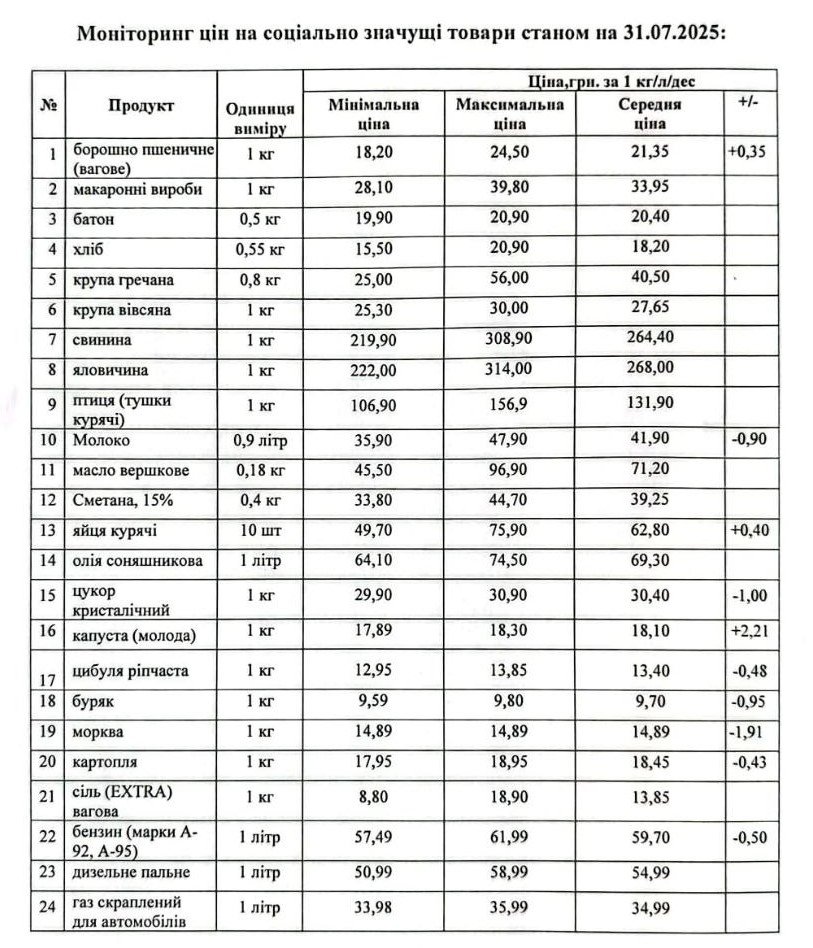 Кременчуцьке районне управління Держпродспоживслужби провело моніторинг цін на соціально значущі товари у торгівельних закладах району станом на 31 липня. З цією інформацією наше видання ознайомила Кременчуцька районна військова адміністрація.