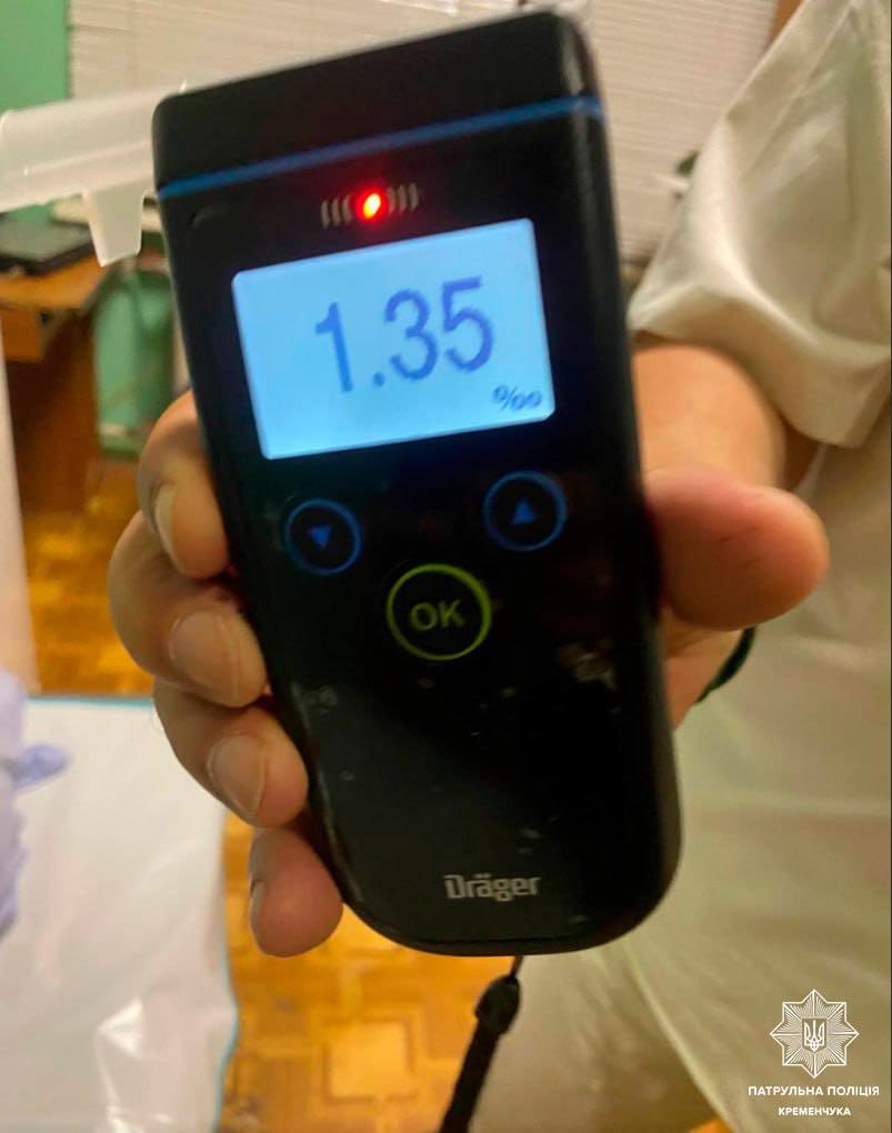 Нещодавно ми писали, що у Кременчуці на проспекті Полтавському патрульні зупинили автомобіль, водій якого мав явні ознаки алкогольного сп’яніння. Огляд на місці за допомогою газоаналізатора «Драгер» показав перевищення граничного значення, який здатен обробляти пристрій. Тобто, «Драгер» не зміг обробити «вихлоп» від водія. У медичному закладі лікар підтвердив стан сп’яніння — 3,27 проміле, що в понад 16 разів перевищує допустиму норму!