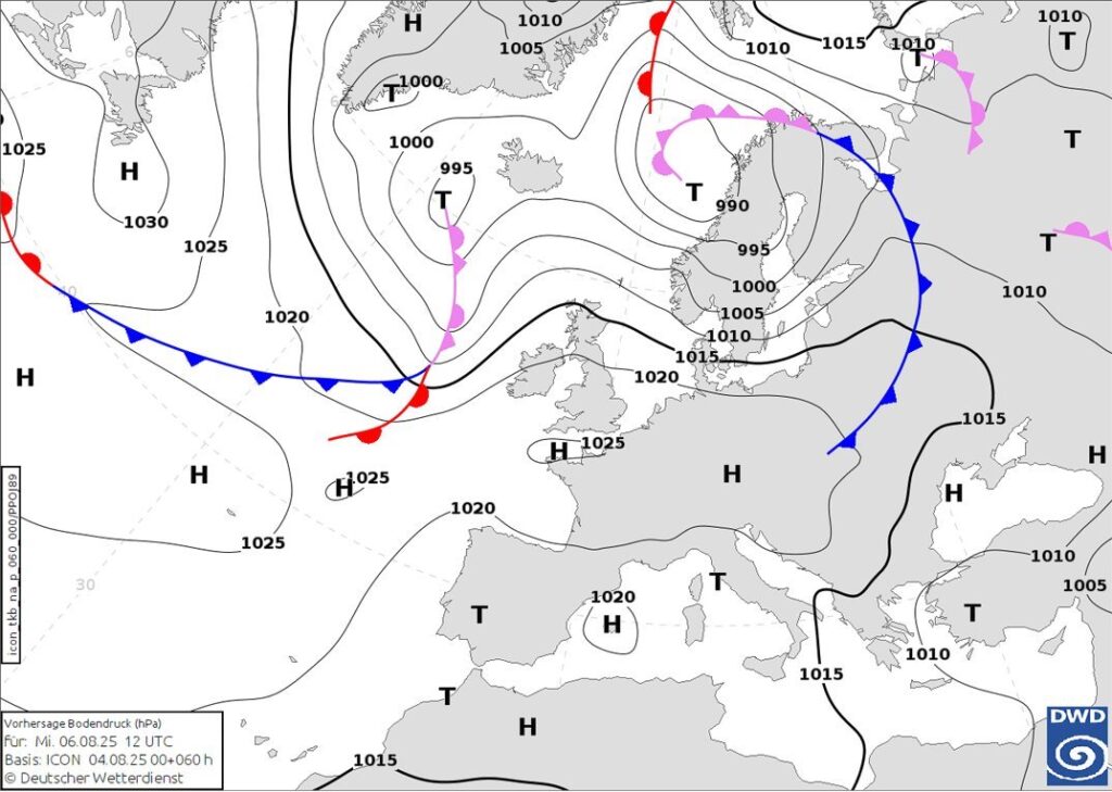 Уночі та вранці 7 серпня через атмосферний фронт із заходу пройдуть дощі різної інтенсивності з грозами. Вдень опади припиняться, а температура знизиться до 23–28°. Вітер північно-західний 7–12 м/с.
