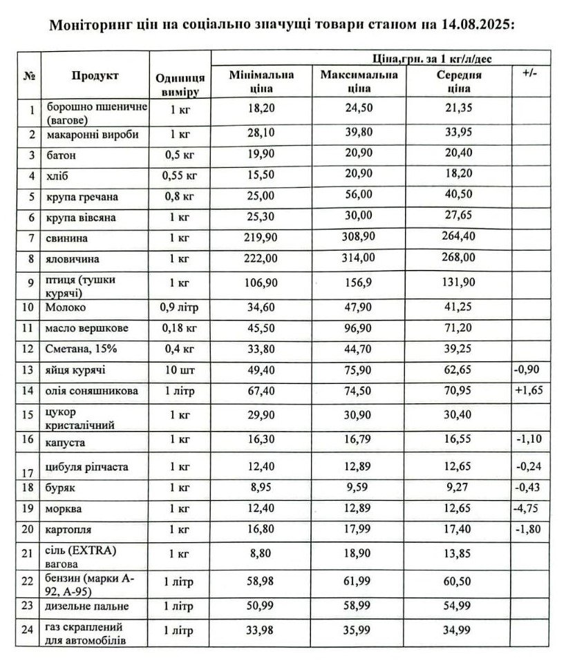 Кременчуцьке районне управління Держпродспоживслужби провело моніторинг цін на соціально значущі товари у торгівельних закладах району станом на 14 серпня. З цією інформацією наше видання ознайомила Кременчуцька районна військова адміністрація.