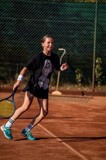 Під час гри у великий теніс працює все ваше тіло і всі групи м’язів, залучені ноги, руки, спина, шия. У зв’язку з необхідністю постійно завдавати ударів супернику і відбивати м’яч почне формуватися прес. У результаті тренувань і гри — дитина природно отримує сформовану м’язову масу тіла. У дитини збільшується фізична витривалість, і покращується психо-емоційний стан.