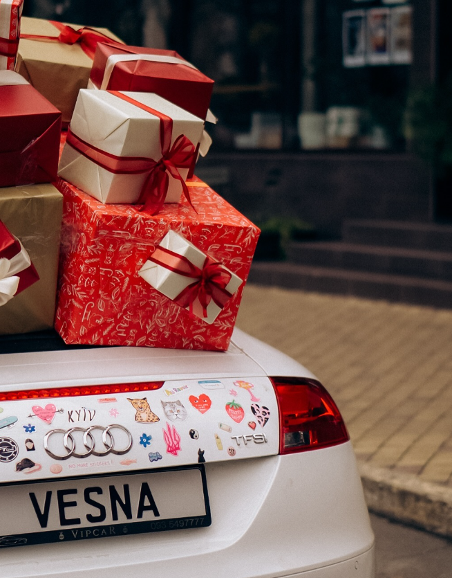 Від гірлянд до святкових подарунків на капоті — її машина стала справжнім символом радості та креативу, привертаючи увагу та даруючи людям посмішки.