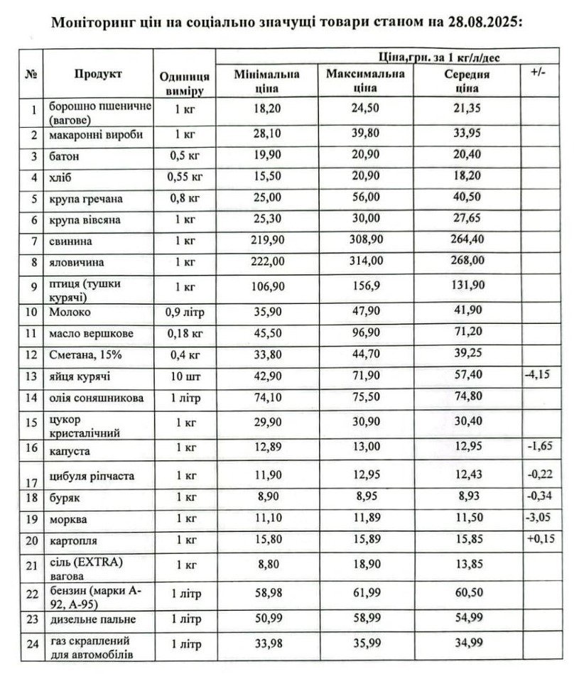 Кременчуцьке районне управління Держпродспоживслужби провело моніторинг цін на соціально значущі товари у торгівельних закладах району станом на 28 серпня. З цією інформацією наше видання ознайомила Кременчуцька районна військова адміністрація.