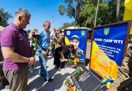 Олександр Аленін разом із очільницею Кременчуцької райради Марією Іванченко та жителями Піщаного, рідними полеглих воїнів поклали на Алеї квіти в пам’ять про кожного загиблого героя.
