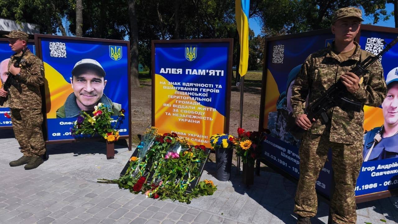 На Алеї встановили 38 портретів жителів Піщанської громади, які віддали свої життя у боях за свободу та незалежність України.
