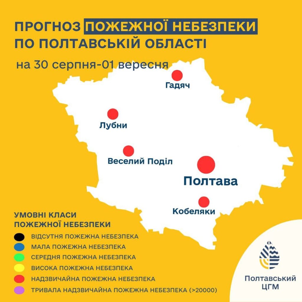 У Найближчі три дні, із 30 серпня до 1 вересня, у Кременчуці та на Полтавщині зберігатиметься рівень надзвичайної пожежної небезпеки. Про це повідомили у пресслужбі Полтавського обласного гідрометцентру.