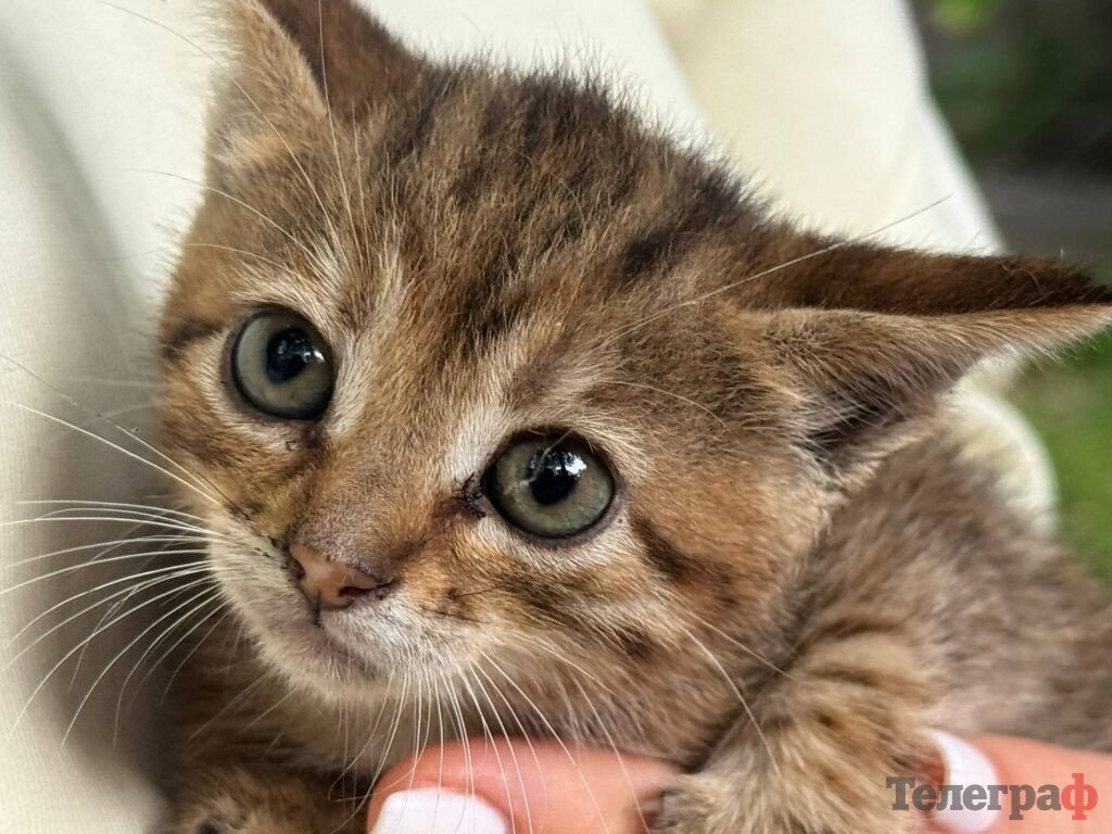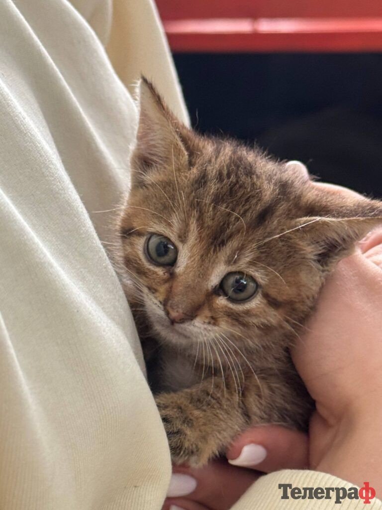 Зовсім маленького котика, не старше місяця, передали молодій жінці, яка всю ніч намагалася заспокоїти тваринку.