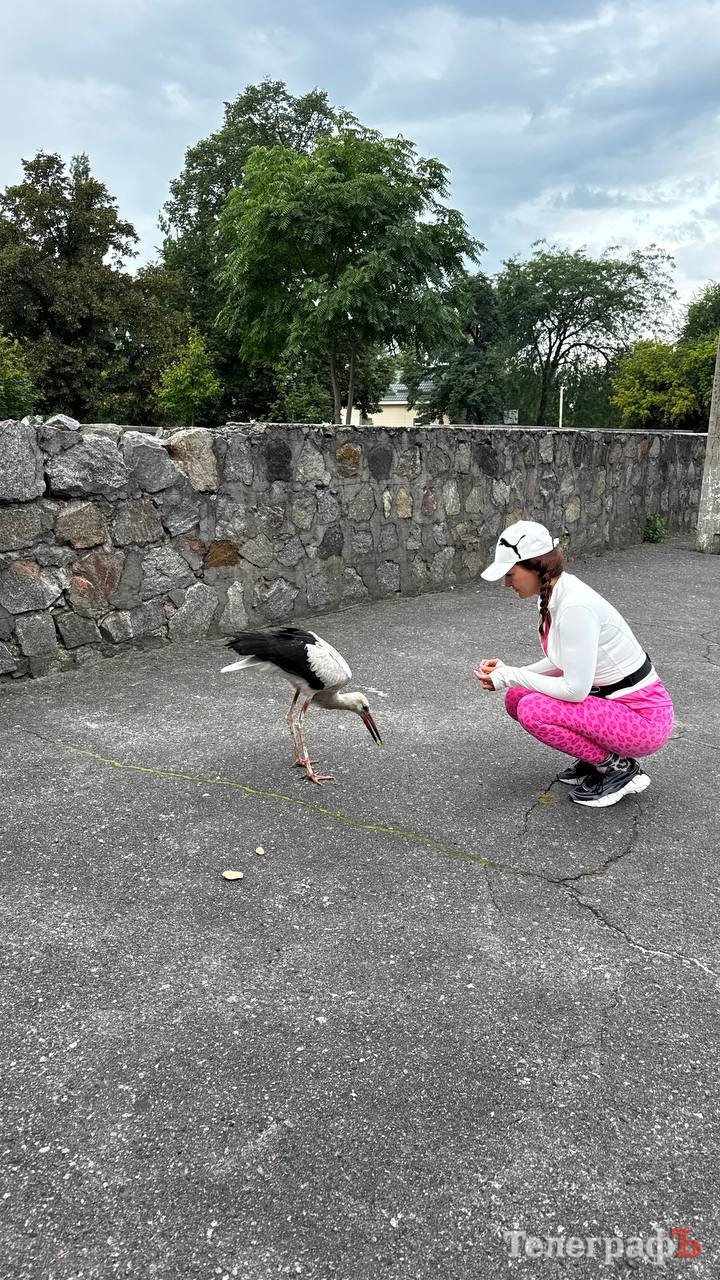 Місцеві мешканки, які гуляють зранку й називають себе «Ранні пташки», підгодовували лелеку фруктами.