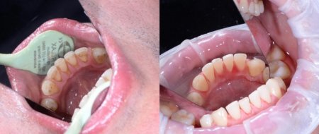 Спершу виконується професійна чистка, яка передбачає видалення твердих і м’яких зубних відкладень за допомогою сучасних методів — ультразвуку та Air-Flow, що є найбільш ощадливим для емалі.