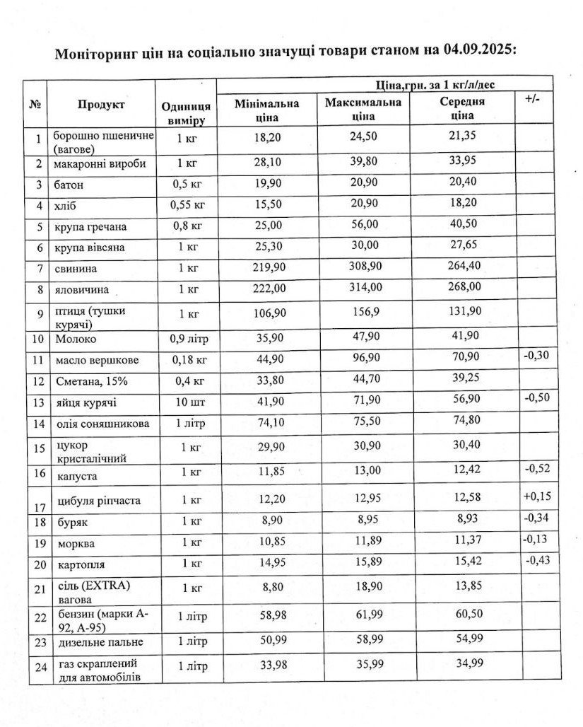 Кременчуцьке районне управління Держпродспоживслужби провело моніторинг цін на соціально значущі товари у торгівельних закладах району станом на 4 вересня. З цією інформацією наше видання ознайомила Кременчуцька районна військова адміністрація.