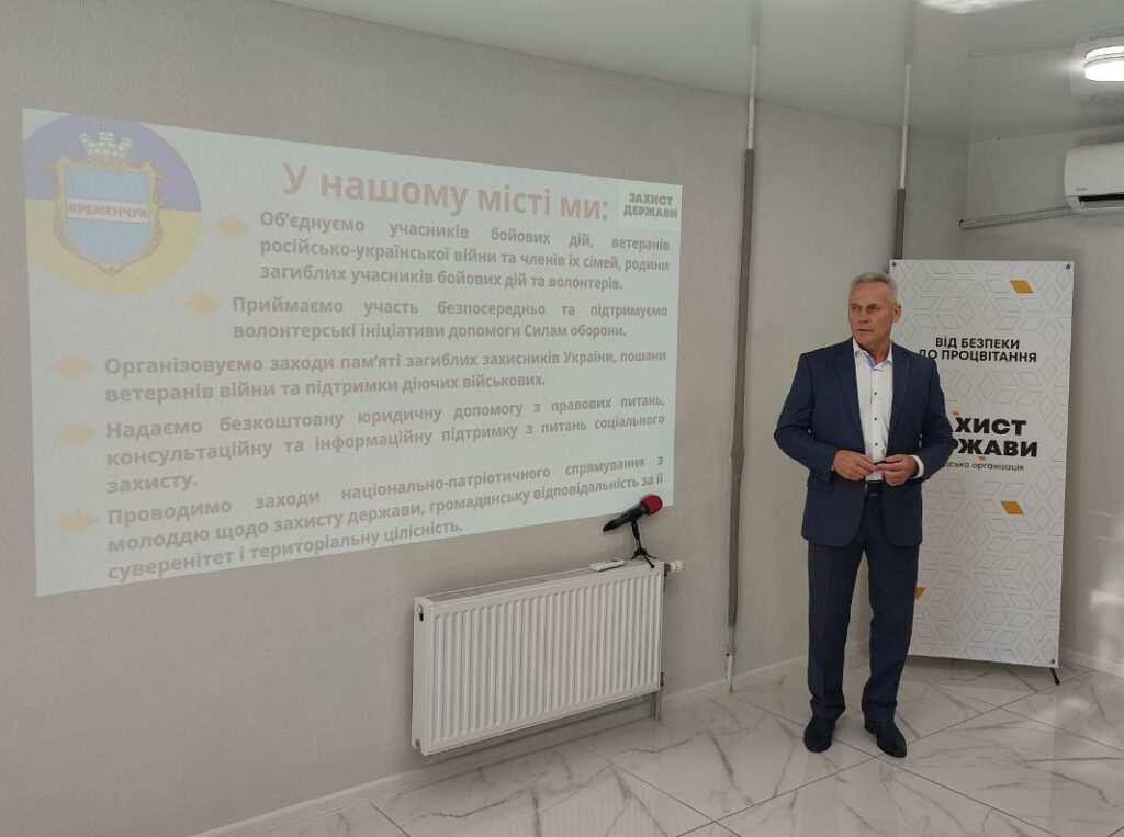 Учора, 4-го вересня, у Кременчуці урочисто відкрили офіс міського осередку громадської організації «Захист держави», який знаходиться у центрі міста на вулиці Шевченка, 34/2. Його відкриття презентував голова Полтавського відокремленого структурного підрозділу ГО «Захист держави» Петро Ворона, який у 2014-2015 роках очолював Полтавську обласну раду і саме в цей час добровільно пішов захищати Україну — проходив військову службу в 79-й окремій аеромобільній бригаді в районах проведення АТО.