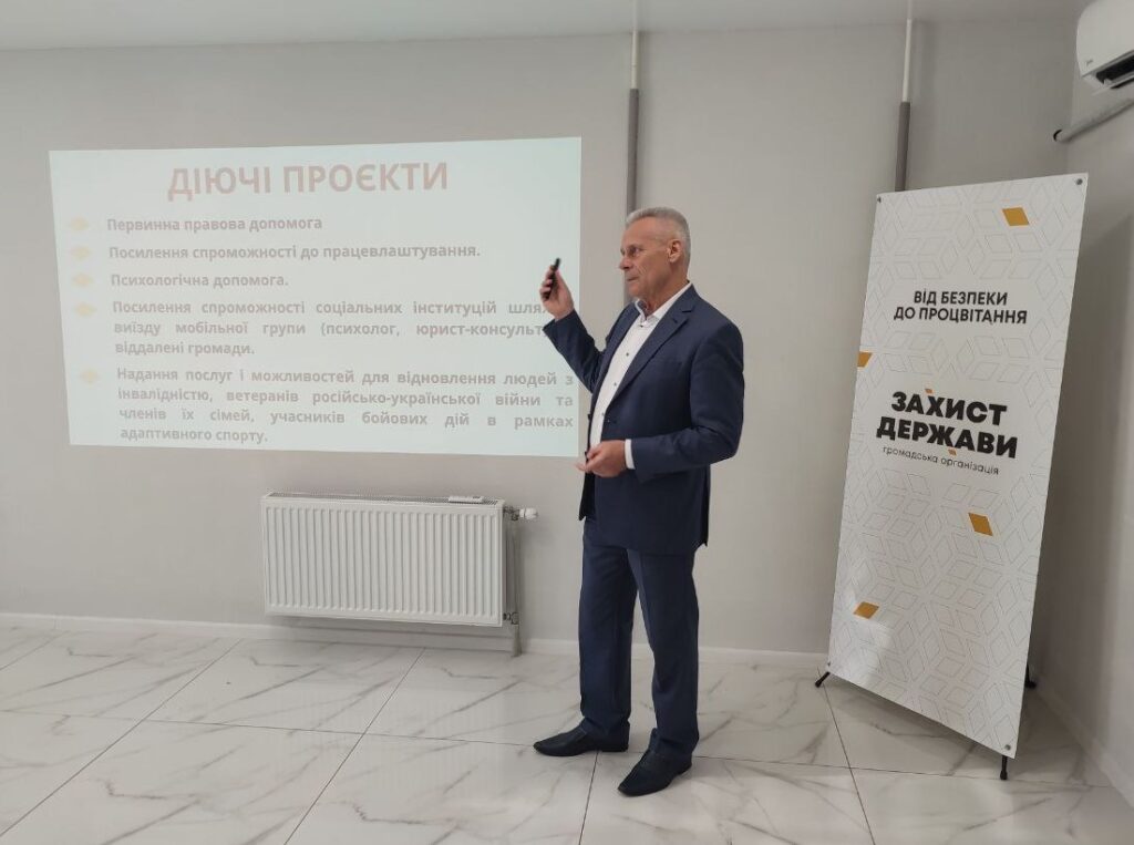 — Громадська організація «Захист держави» — це організація, яка має свої осередки практично у всіх областях України. Ми розвертаємо їх для того, щоб допомагати тим ветеранам та ветеранкам, які зараз повернулися з фронту, надаючи їм правову, соціальну, адаптивну допомогу. Щоб вони швидше і краще адаптувалися й не мали проблем. І знали, що влада їх розуміє і що ми їм допоможемо, — заявив на презентації Петро Ворона.