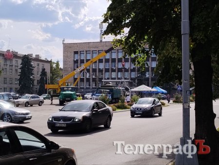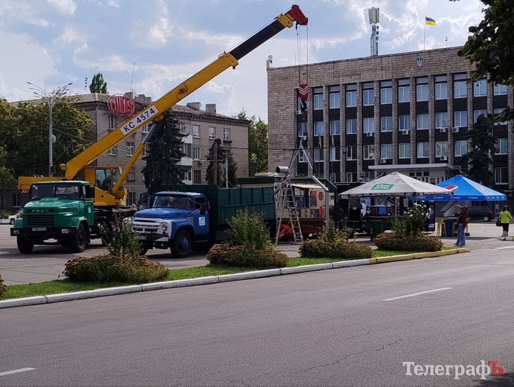 17 вересня у Кременчуці на площі Незалежності демонтують автоматизовану охолоджувальну арку. Роботи проводять працівники КП «Кременчукводоканал». Про це повідомила кореспондентка «Кременчуцького Телеграфа» з місця події.