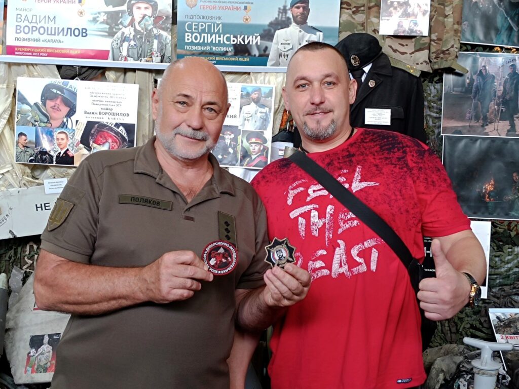 Вчора кременчуцький волонтер Олег Биков разом із розвідником ДШВ, воїном Олексієм з позивним «Мовчун» передали в музей два ворожі шеврони, зняті з російських окупантів, — трофеї з поля бою.