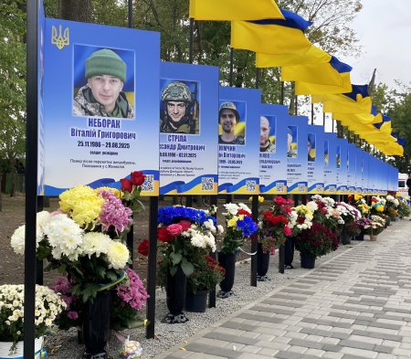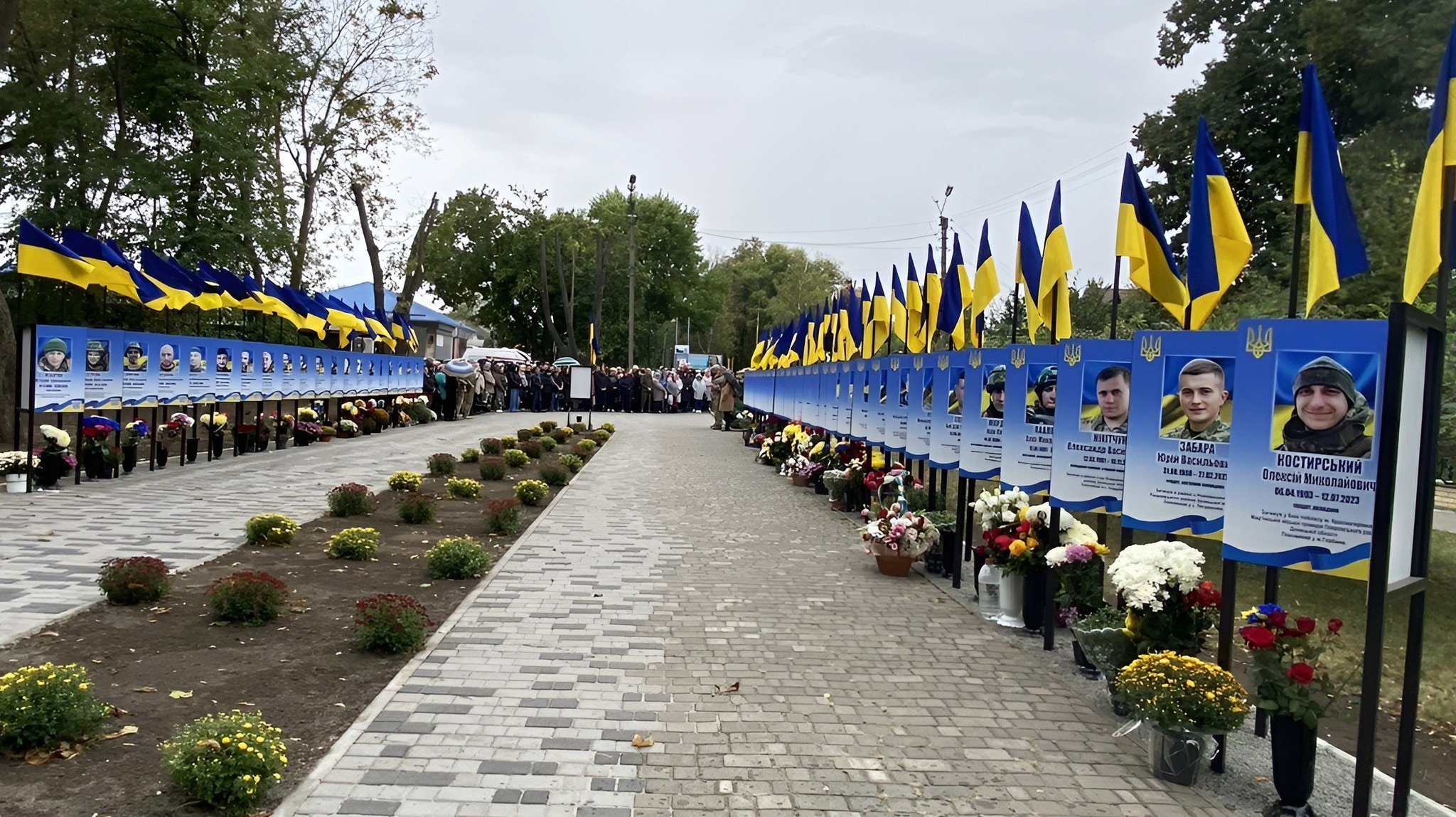 Портрети 100 загиблих захисників громади встановили у Свято-Миколаївському сквері.