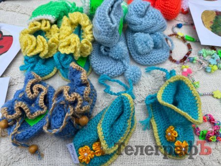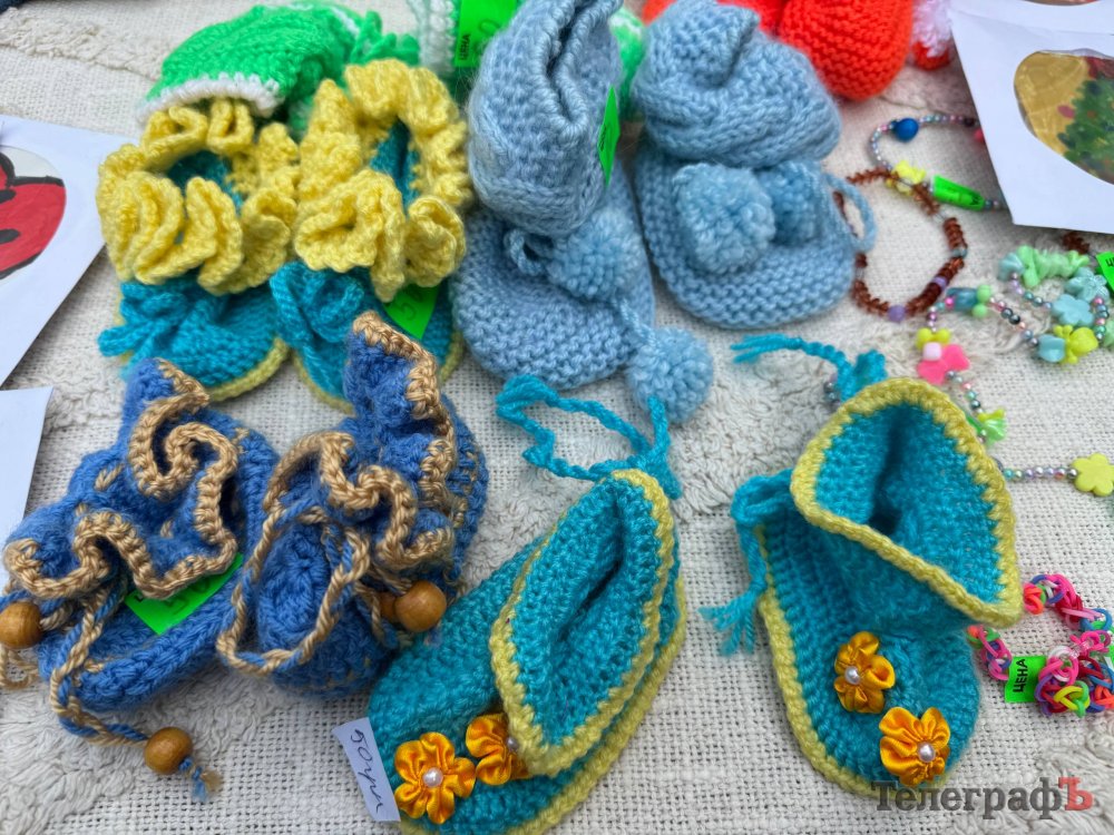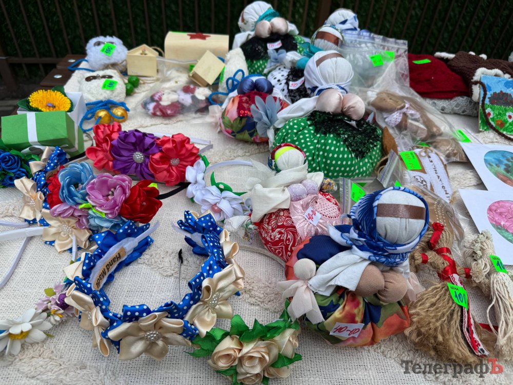 На столах — вироби, зроблені власноруч мамами та дітьми: сумки-шопери, розписані фарбами, свічки ручної роботи, керамічні чашки, мило та смаколики — духмяні кекси, пиріжки зефір та багато іншого.
