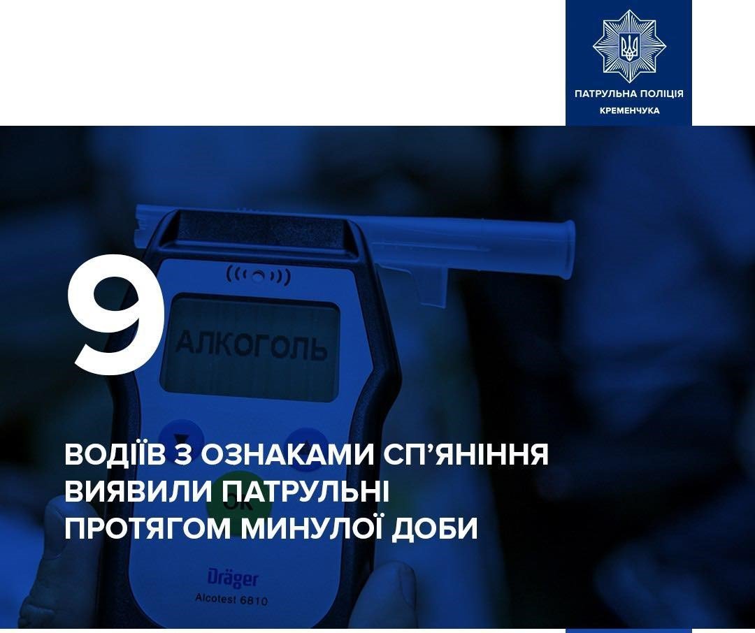 Нагадаємо, учора ми повідомляли, що упродовж минулих вихідних у Кременчуці патрульні зупинили 11 нетверезих водіїв.