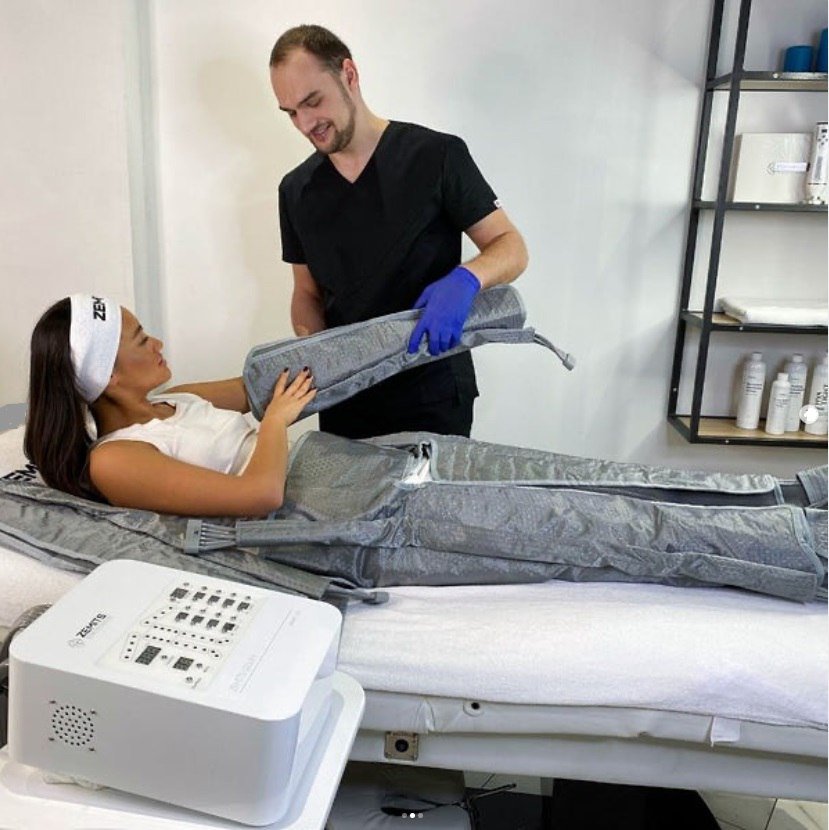 Пресотерапія (процедура, яка поєднує в собі лімфодренажний масаж і делікатну компресію на тіло за допомогою спеціального апарата).