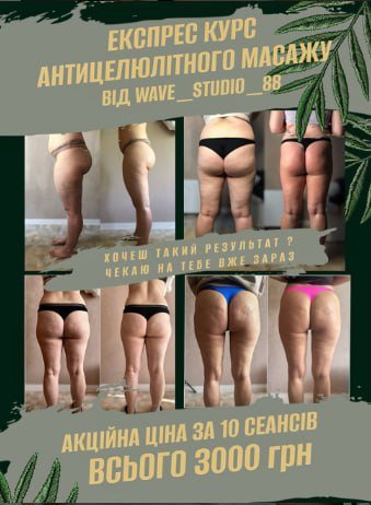 - Антицелюлітний та лімфодренажний масаж — тіло моделюється, стимулюється обмін речовин, зменшуються набряки.