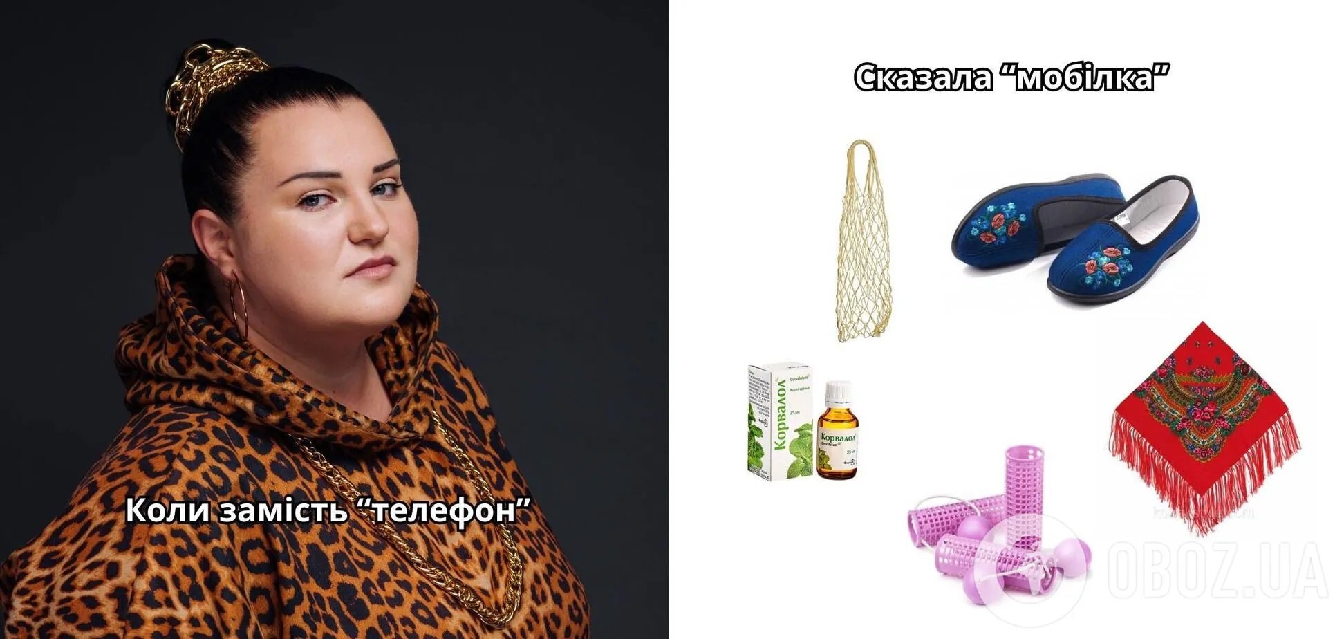 До тендеції долучилися й зірки вітчизняного шоу-бізнесу. Чудовим прикладом поділилася реперка alyona alyona, опублікувавши власне бачення тренду. У ролику йдеться «коли замість телефон сказала мобілка», а на фото можна побачити атрибути — хустку, корвалол, капчики та інше.