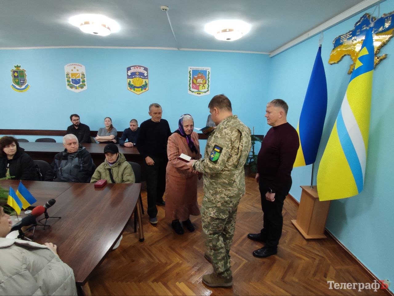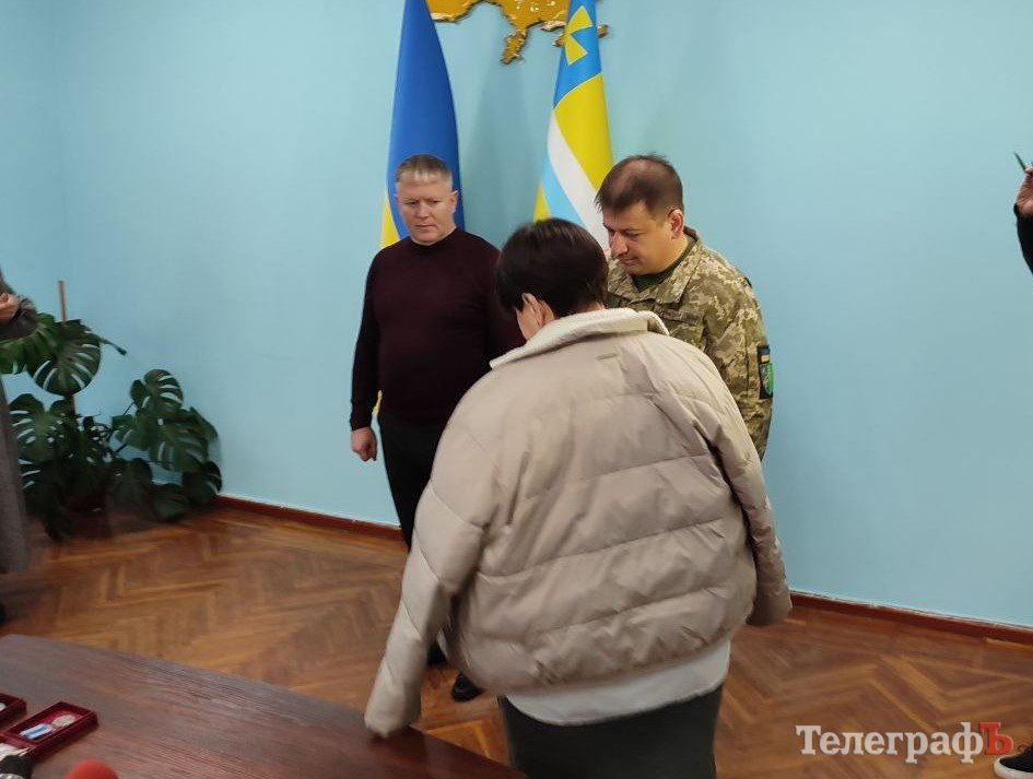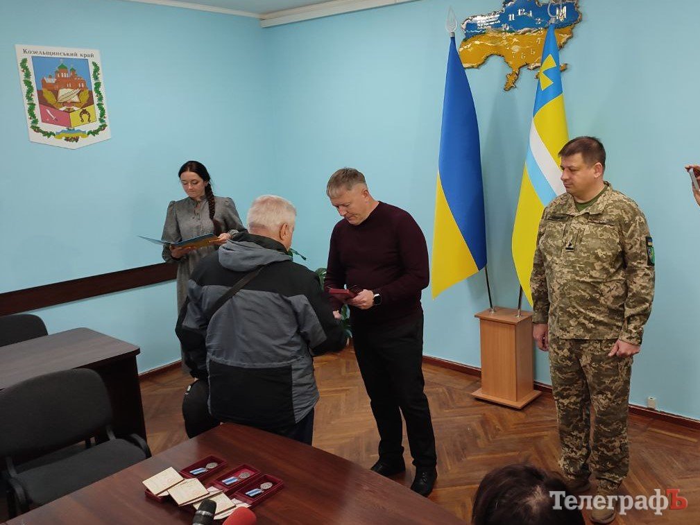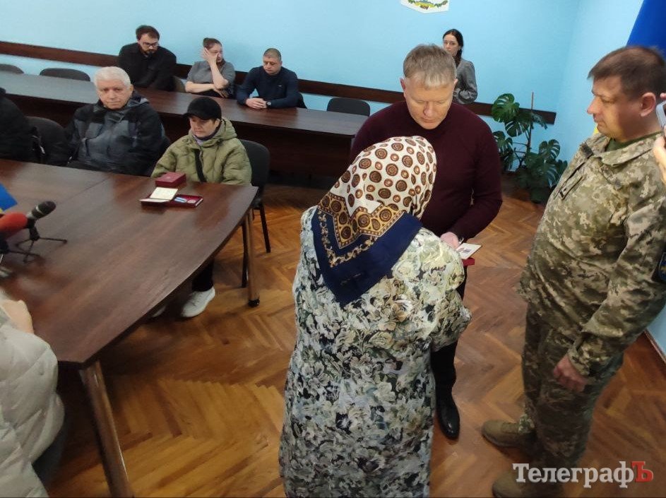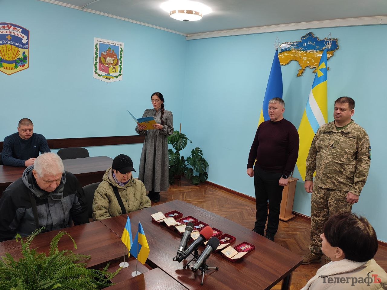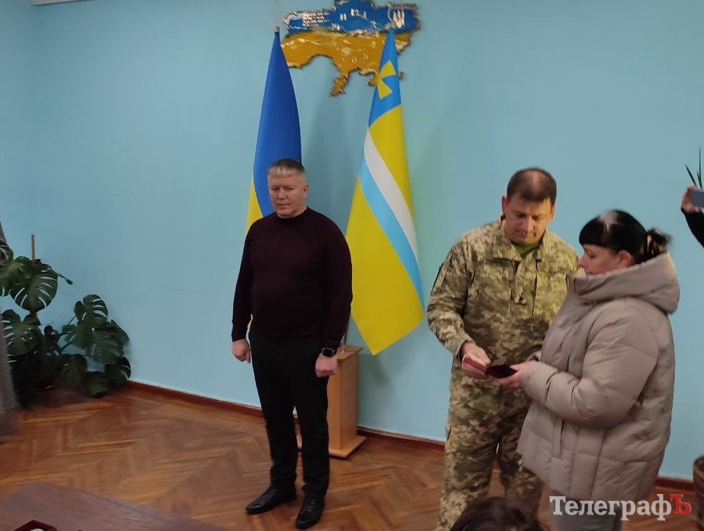Державні нагороди рідним загиблих військовослужбовців передали очільник Кременчуцької районної військової адміністрації Олександр Аленін та тимчасово виконуючий обовʼязки начальника Кременчуцького районного ТЦК та СП майор Тарас Саражин.