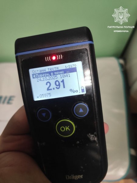 Нагадаємо, вранці ми повідомляли, що учора, 24 жовтня, у Кременчуці п’яний водій пропонував патрульним хабар - рівень алкоголю в нього у 17 разів перевищував допустиму норму.
